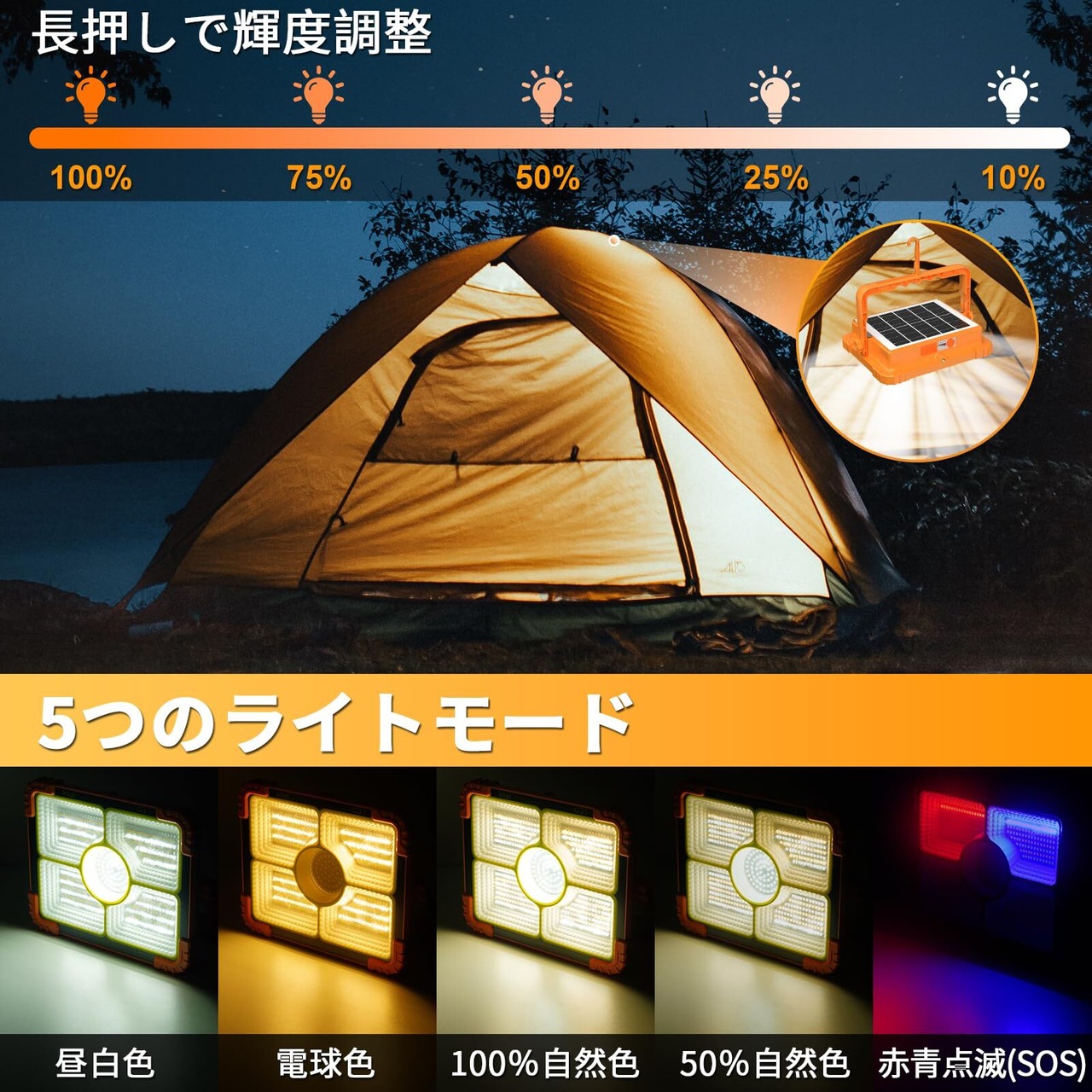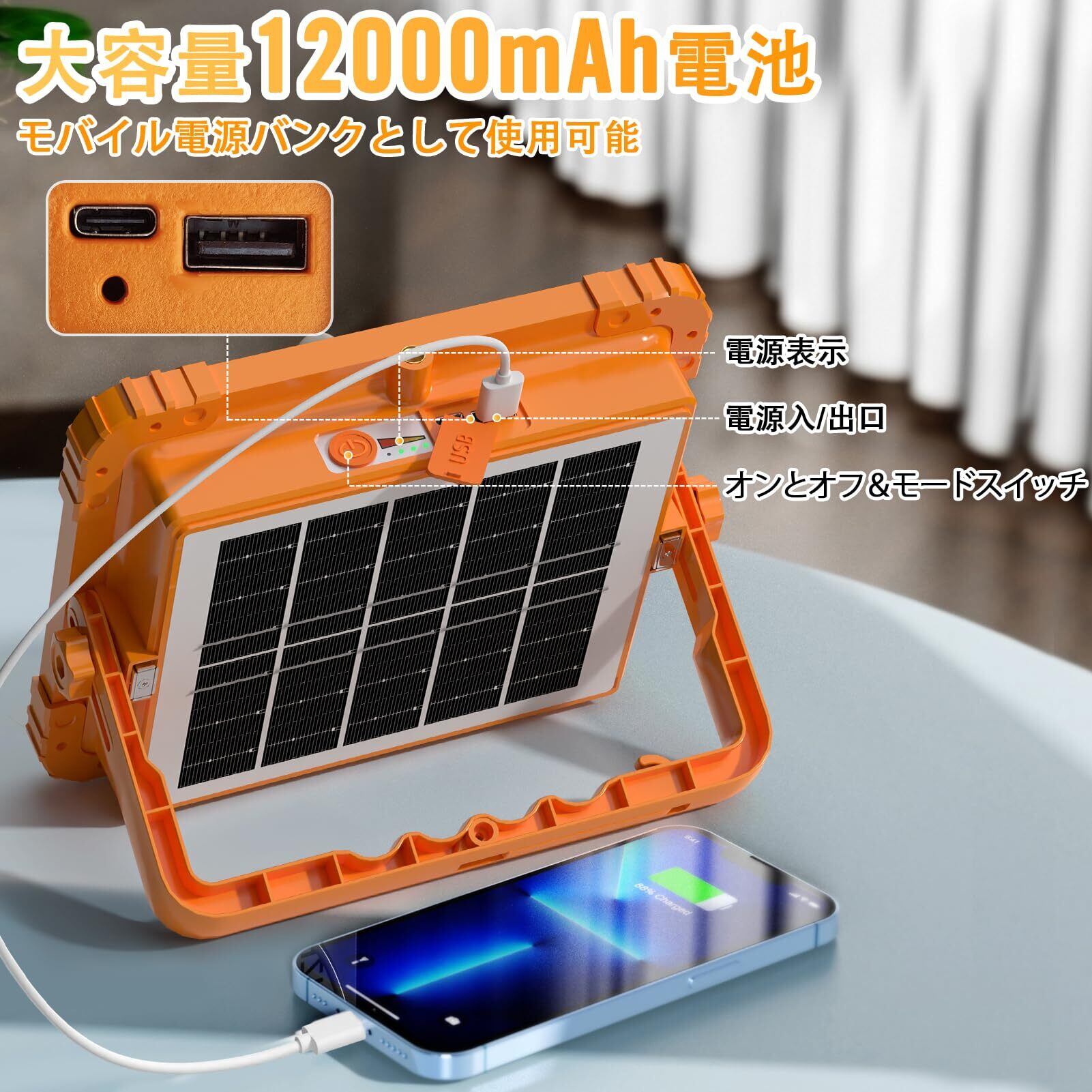 【人気】LED投光器 超高輝度 13000LM 充電式投光器 Type-C/ソーラー充電 5つの照明モード 無段階調光 IP66防水・防塵 12000mAh大容量 466個LEDチップ 100W 120°広角 三脚対応 マグネット&フック付き 便携式 太陽光発電 集魚灯 作業灯 防災ライト アウトドア キャンプ 夜釣り 停電対策 地震対策 PSE認証済み オレンジ | GIGATERA