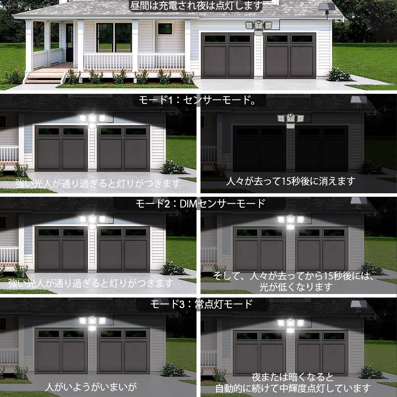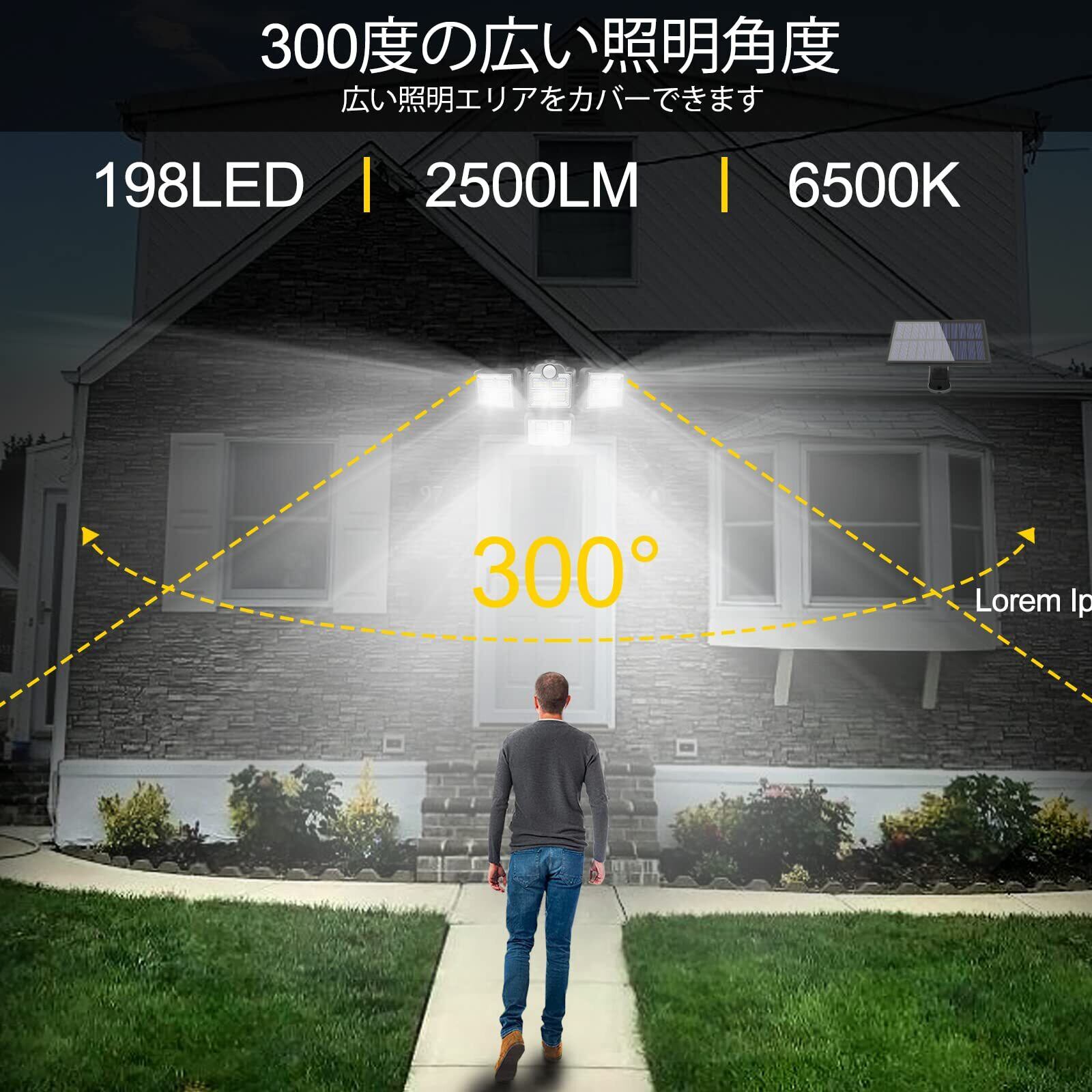【人気】ソーラーライト 屋外 防水 センサーライト 分離型 CTDZLED【198LED/4灯式/2500ルーメン/5M延長コード】人感センサーライト 自動点灯 明るい 太陽光センサーライト 2400mAh大容量バッテリー 防犯ライト ガーデンライト/壁掛け/庭先/表玄関/駐車場/停電時適用 防災ライト 地震 津波 台風 防災対応 | GIGATERA