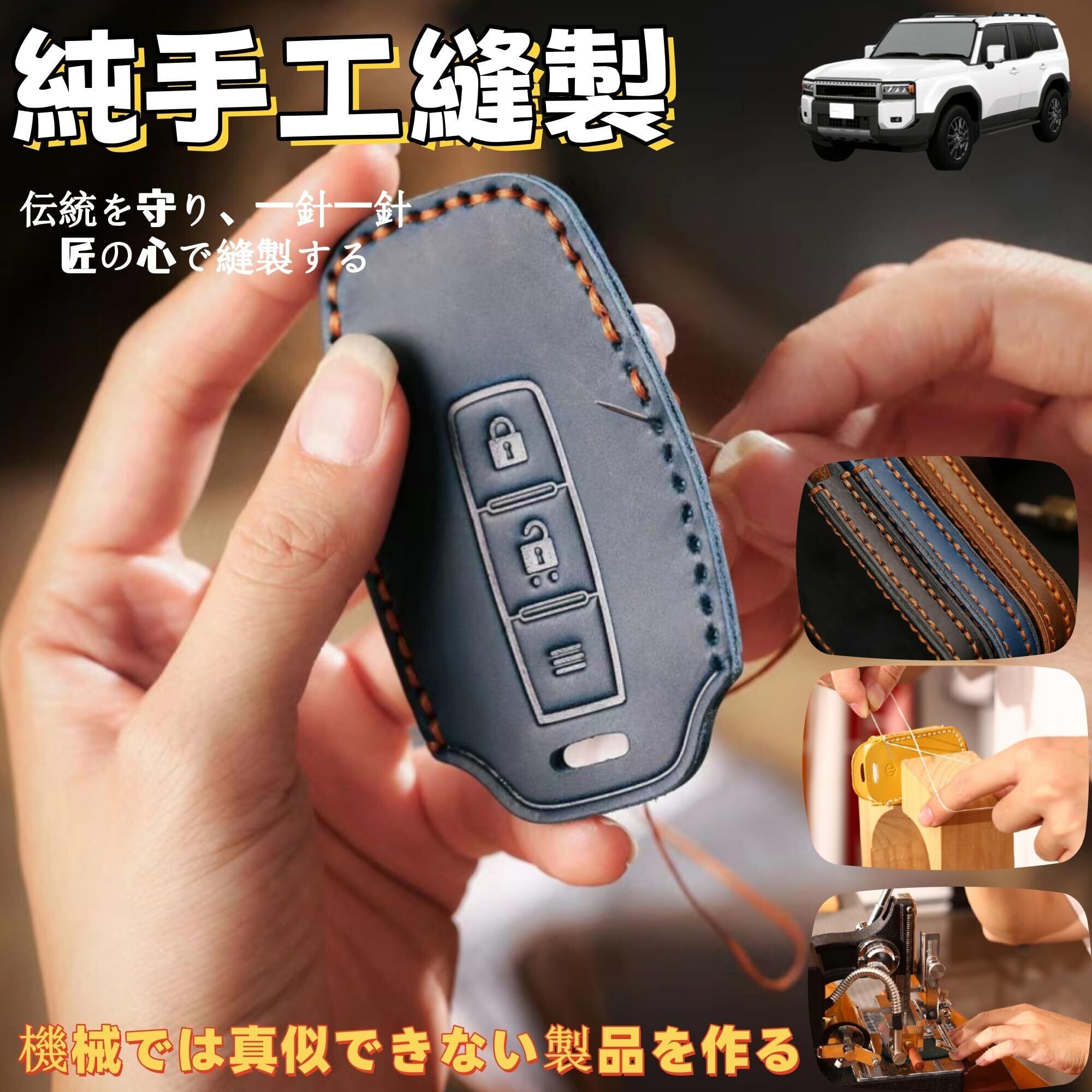 【新着】[TatkDIY] 新型 ランドクルーザー250系 ランクル250 に適合 カスタムパーツアクセサリー 専用スマートキーケース キーカバー キーホルダー 本革 3ボタン キズ防止 (ロゴ付きブラック) | GIGATERA