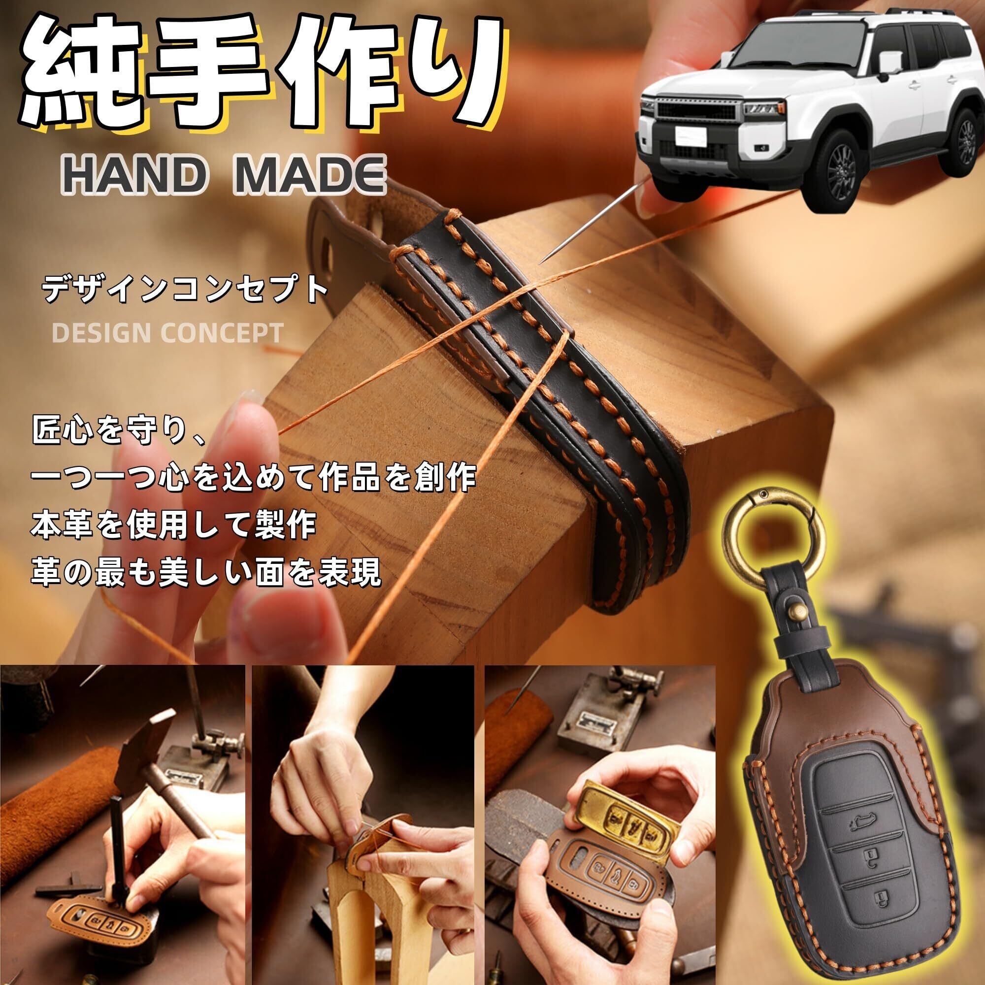[TatkDIY] 新型 ランドクルーザー250系 ランクル250 に適合 カスタムパーツアクセサリー 専用スマートキーケース キーカバー キーホルダー 本革 3ボタン キズ防止 (ロゴ付きブラック)