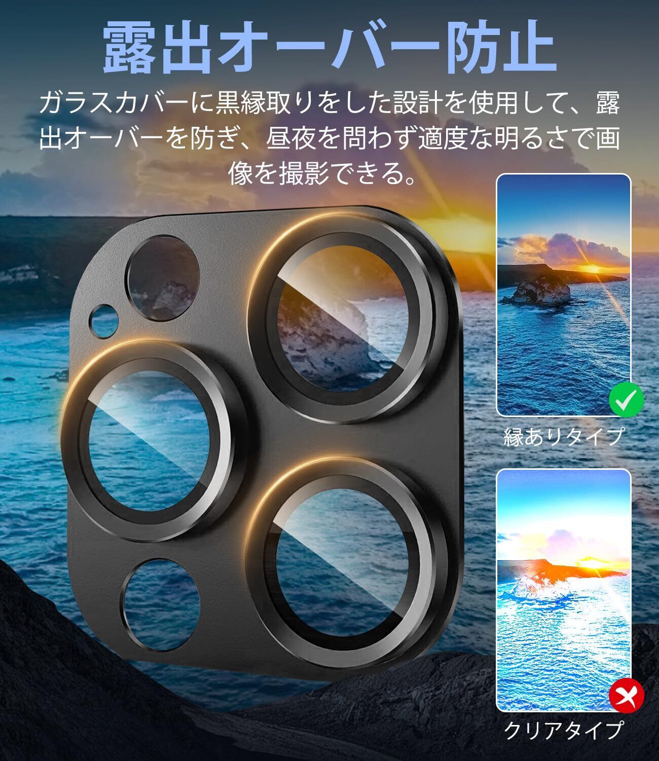 OAproda iPhone 16Pro/16ProMax/15Pro/15ProMax/14Pro 用 カメラ保護 フィルム 【アルミ合金+強化ガラス】 9H 耐衝撃 カメラカバー 黒縁 露出オーバー防止 曇りなし 粘着性強い 貼りやすい(ブラック)