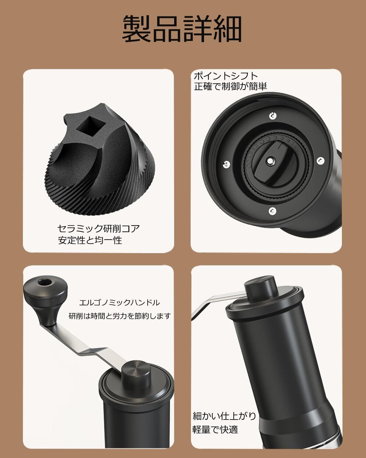 お手入れが簡単: 工具なしで全身を取り外すことができるため, 徹底的な洗浄が可能になり, 長時間使用しても手動コーヒーグラインダーを新品に保ちます.