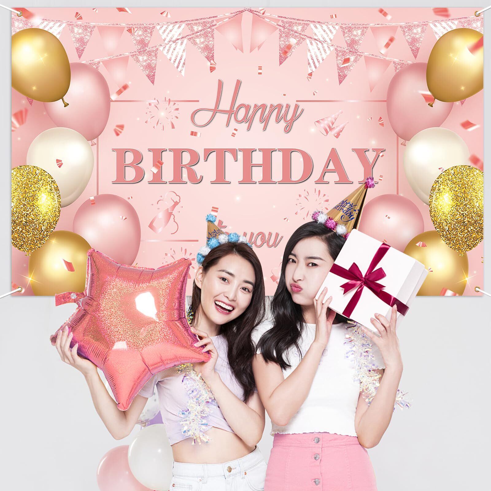 【新着】Paready バースデー タペストリー 誕生日 飾り付け 壁掛け 大判 フォトポスター 写真背景 壁飾り Happy Birthday パーティー 飾り おうちスタジオ シンプル おしゃれ 装飾 大人 女の子 ローズピンク | GIGATERA