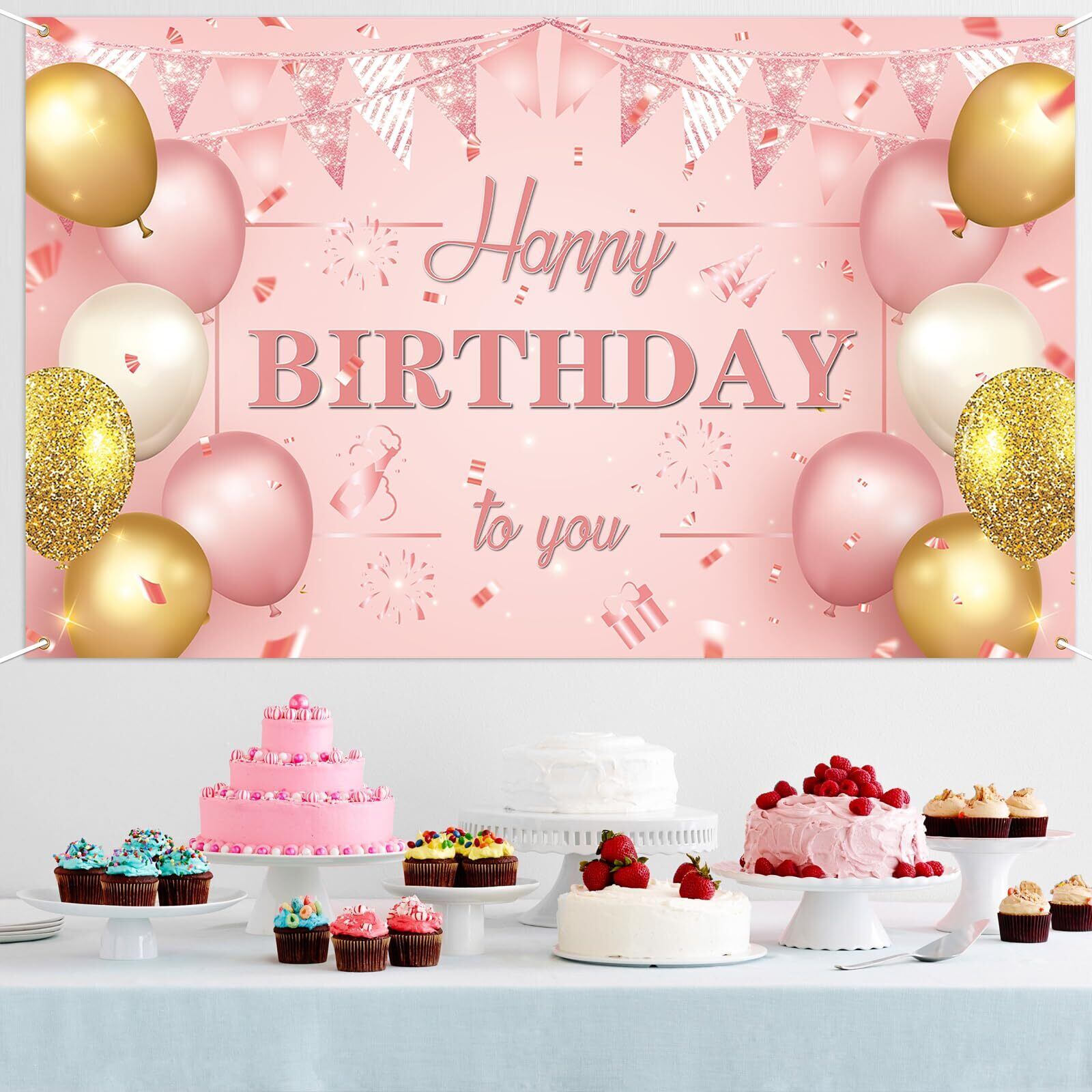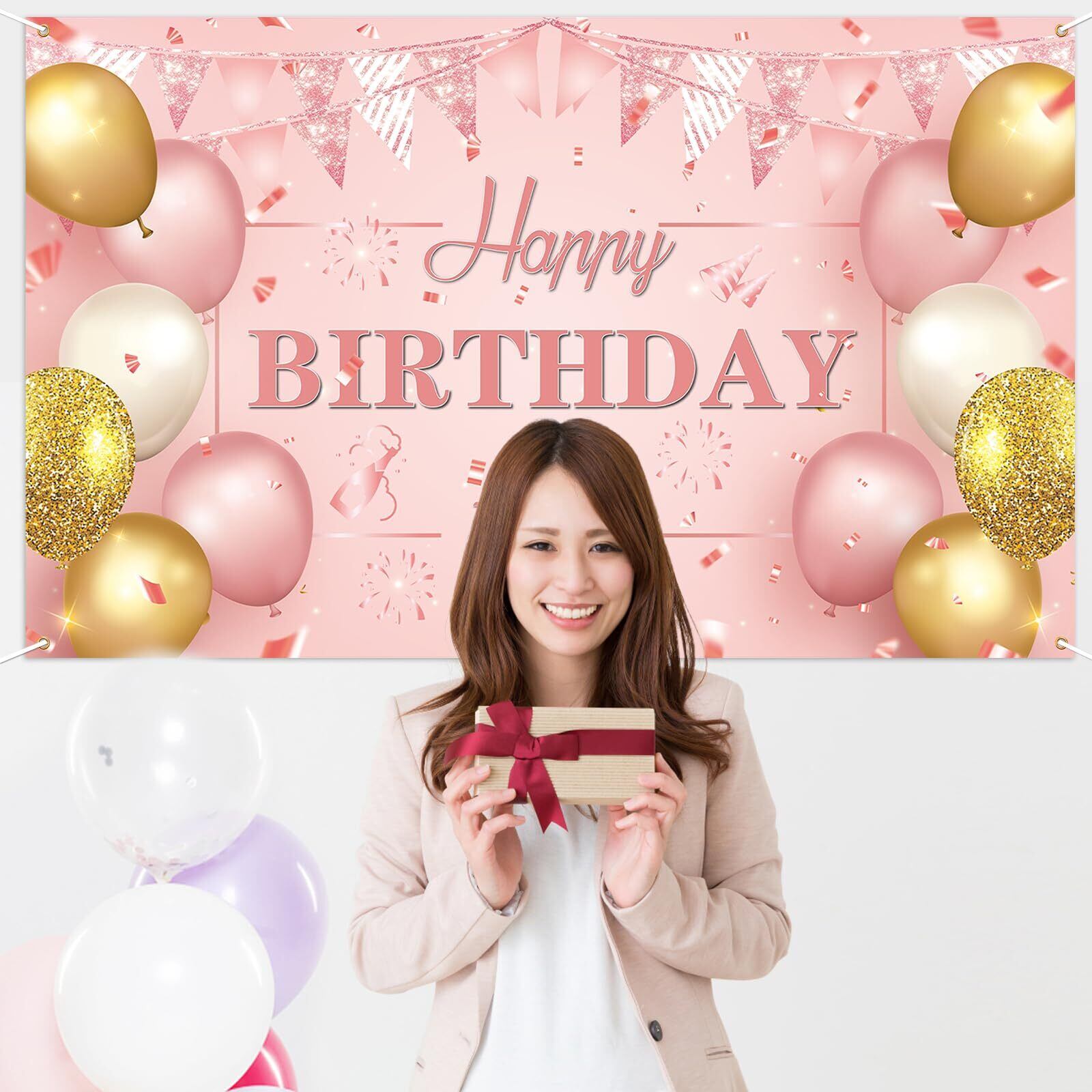 Paready バースデー タペストリー 誕生日 飾り付け 壁掛け 大判 フォトポスター 写真背景 壁飾り Happy Birthday パーティー 飾り おうちスタジオ シンプル おしゃれ 装飾 大人 女の子 ローズピンク