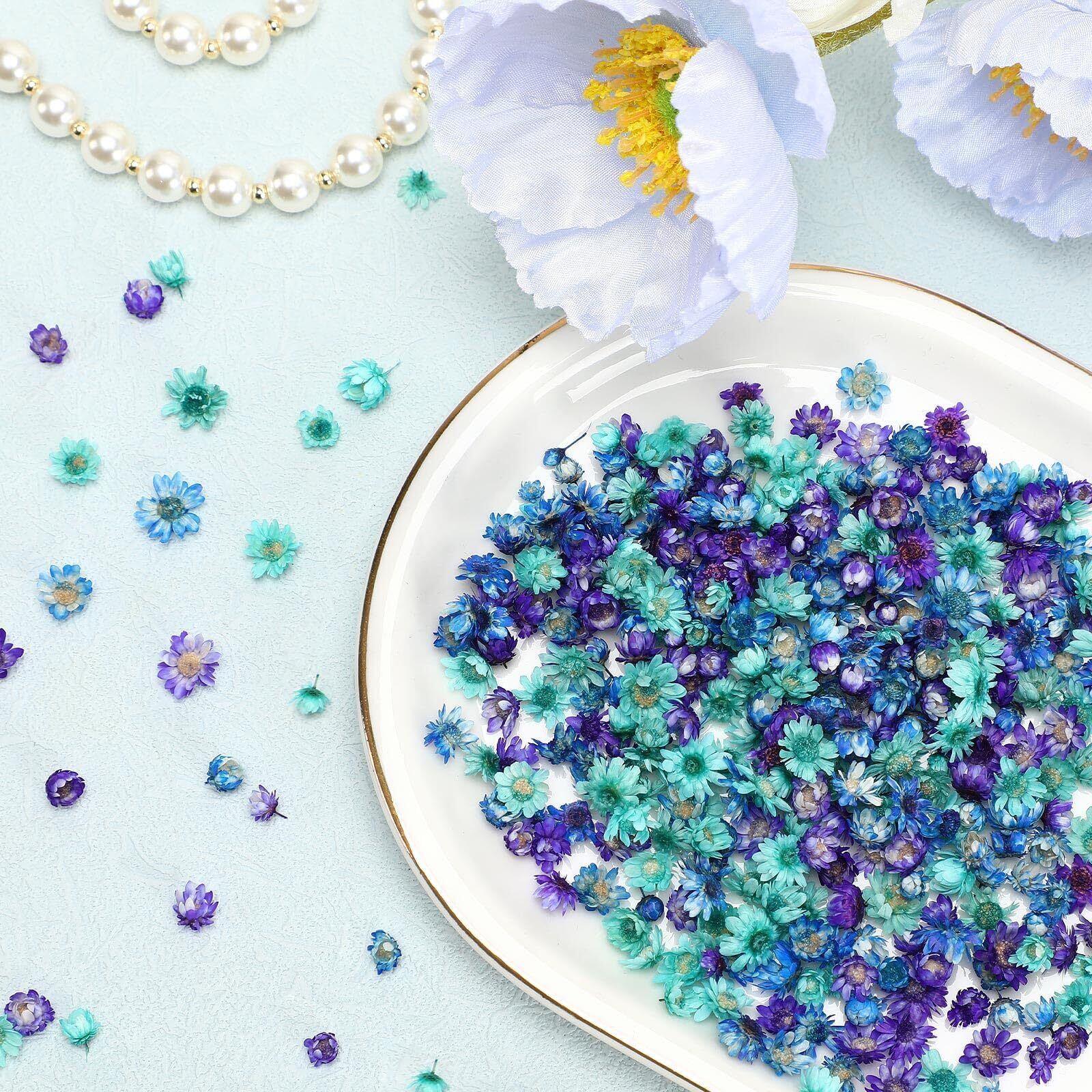 多彩なレジンパーツ:ドライフラワーセットには、多彩な色合いの押し花が含まれています。色合いが豊富で、天色 、青色、紫色、あらゆる色を楽しむことができます。好きな分だけ使用することて、自分なりのアイデアで工夫することができます