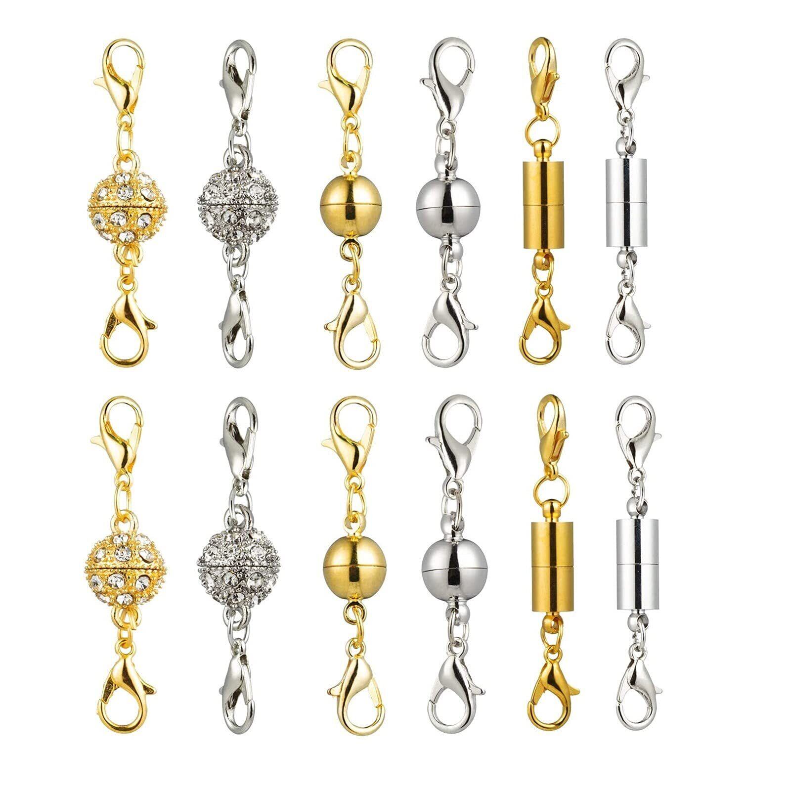 ネックレス 留め具 マグネット留め具 簡単装着 磁気クラスプ エンドパーツ ジュエリー用 延長用金具 DIY用 クラフト作り 収納袋付き 12個セット