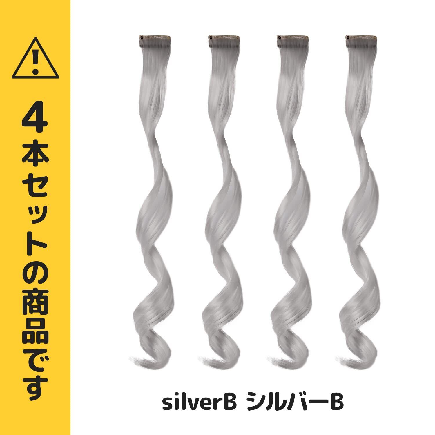 [クラッセ] ワンタッチカールエクステ 4本セット 単色 巻き髪 ぱっちん 簡単 エクステ シルバーB