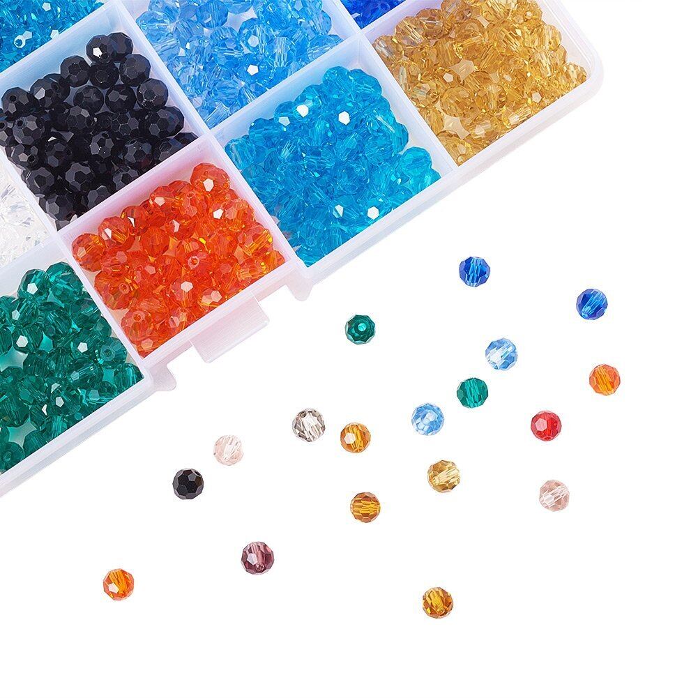PH PandaHall 約750個/箱 6mm 15色 ガラスビーズ そろばん 多面的 カット オーストリア ビーズ ジュエリー用 UVレジン 封入 DIY用 手芸材料 手作り 素材 ハンドメイド 混合色