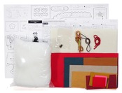 キット内容:布、フェルト、詰め綿、目玉ボタン、ビーズ、紐、ゴム、刺しゅう糸、作り方説明書、実物大型紙