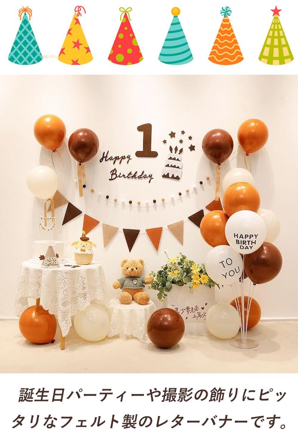 【セール】harukita 誕生日 飾り付け バースデー 飾り 写真背景 シンプル 装飾 フェルト生地 壁掛け 女の子 男の子 大人 三角旗ガーランド フグボールガーランド happy birthday | GIGATERA