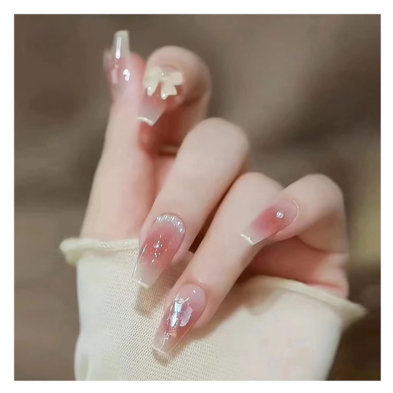 Lwenjing ネイルチップ 24枚入 手作りネイル ショート 春夏 人気 和風 かわいい シンプル おしゃれ 花嫁ネイル 光沢 つけ爪 両面テープ 成人式 入学式 卒業式 結婚式 ネイルチップ (Z363)