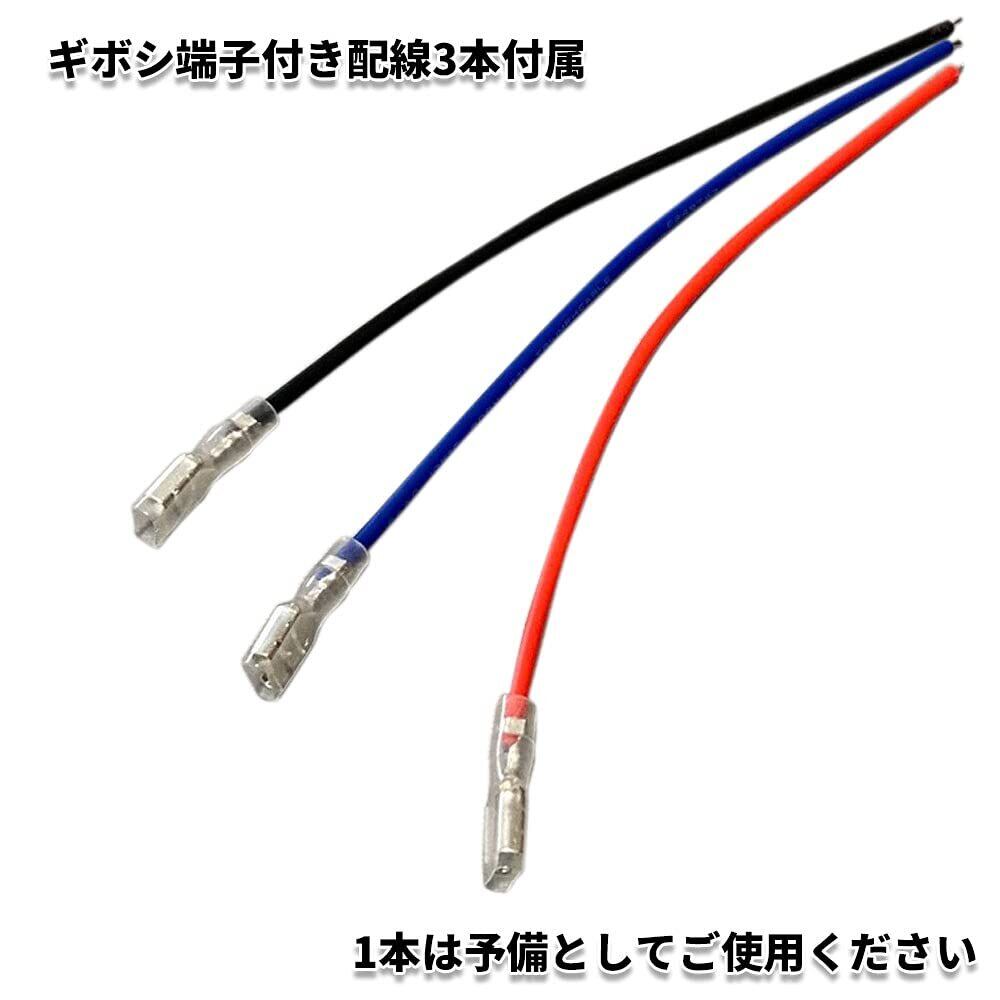 便利なギボシ端子付き配線が3本付属しています。1本は予備としてご使用ください。
