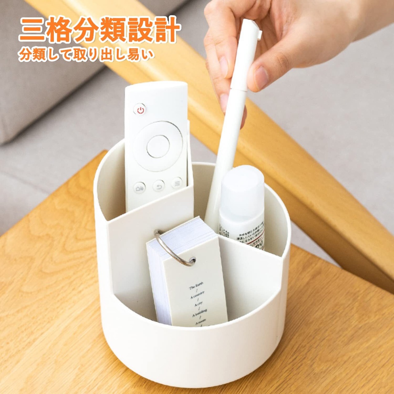 【在庫処分】Homdolaser ペン立て 360度回転 ペンホルダー ペンスタンド 大容量 ぺんたて 3グリード分類鉛筆たて 多機能 分類箱 小物 卓上収納 文房具 化粧品 便利 オフィス 家庭生活用 収納ボックス オフホワイト | GIGATERA