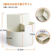 Homdolaser ペン立て 360度回転 ペンホルダー ペンスタンド 大容量 ぺんたて 3グリード分類鉛筆たて 多機能 分類箱 小物 卓上収納 文房具 化粧品 便利 オフィス 家庭生活用 収納ボックス オフホワイト
