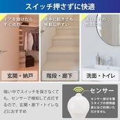 【 特 長 】 ◆周囲が暗い時、人の動きを検知して自動で点灯します ◆人の動きがなくなると約90秒後に消灯をお知らせするモードに移り、自動消灯します。人が動くと点灯は延長されます。