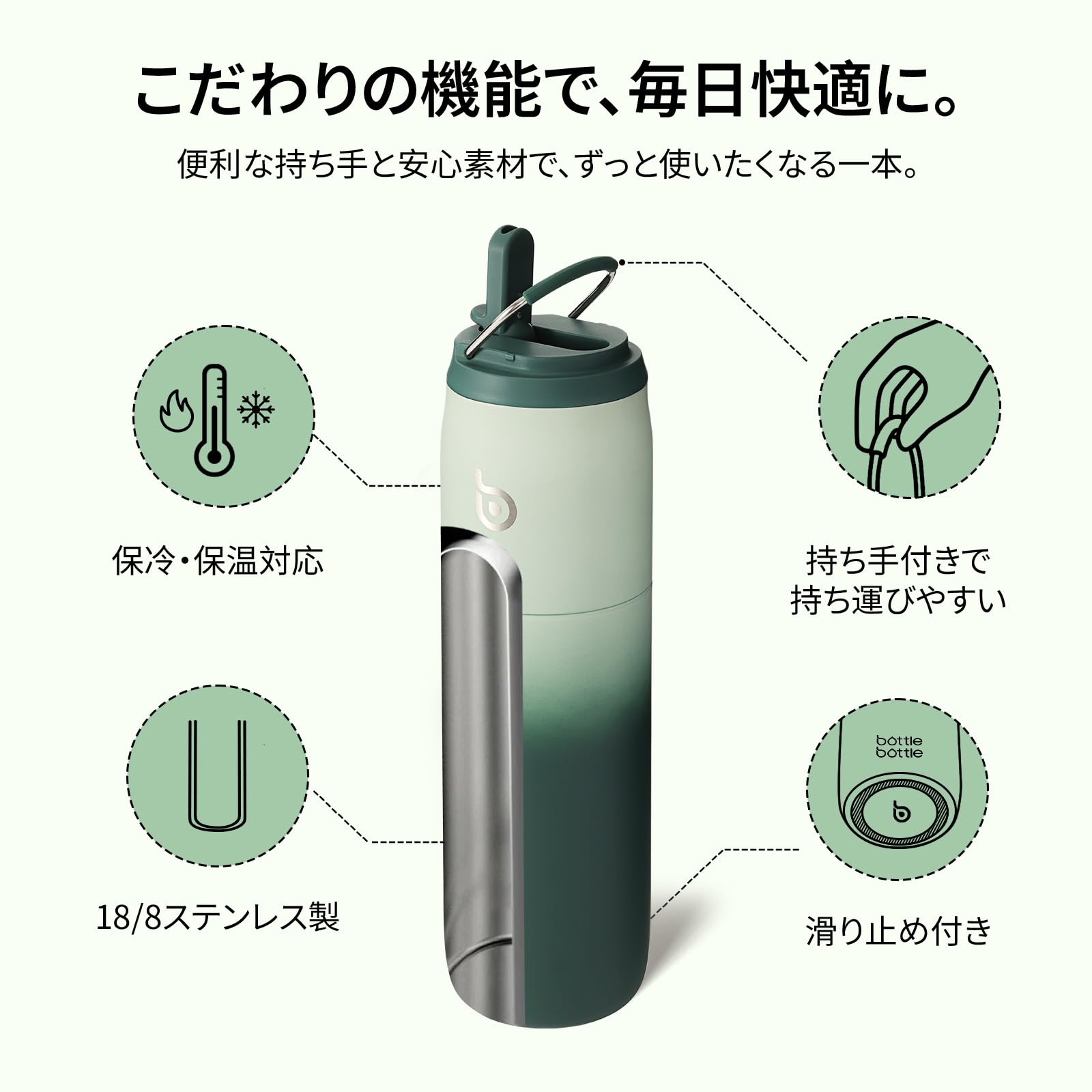 BOTTLE BOTTLE 水筒 1リットル 子供 直飲み 保温保冷 真空断熱 ボトル ステンレス ウォーターボトル 持ち運び グリーン