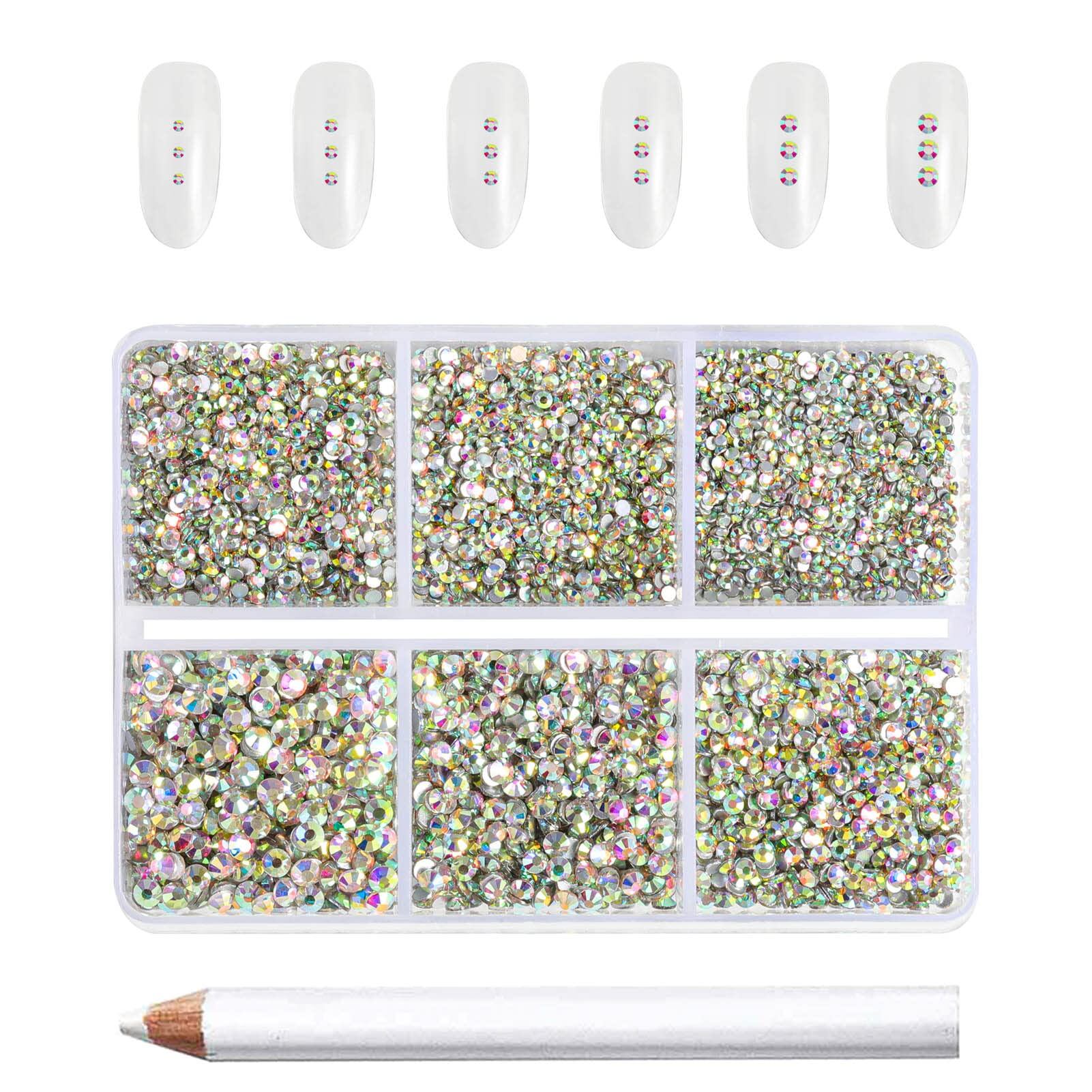 Beadsland(ビーズランド)7,200個フラットバック ラインストーン 、ネイル用ジェム ラウンド クリスタルラインストーン 手工芸用 6サイズ混合 ワックスペンシルキット付き、SS3-SS10、クリスタルAB