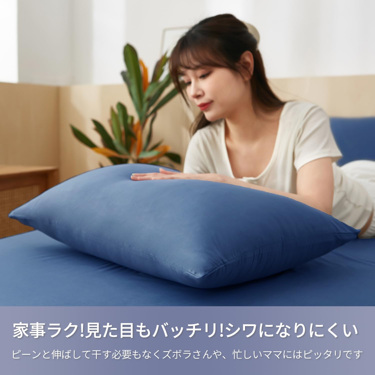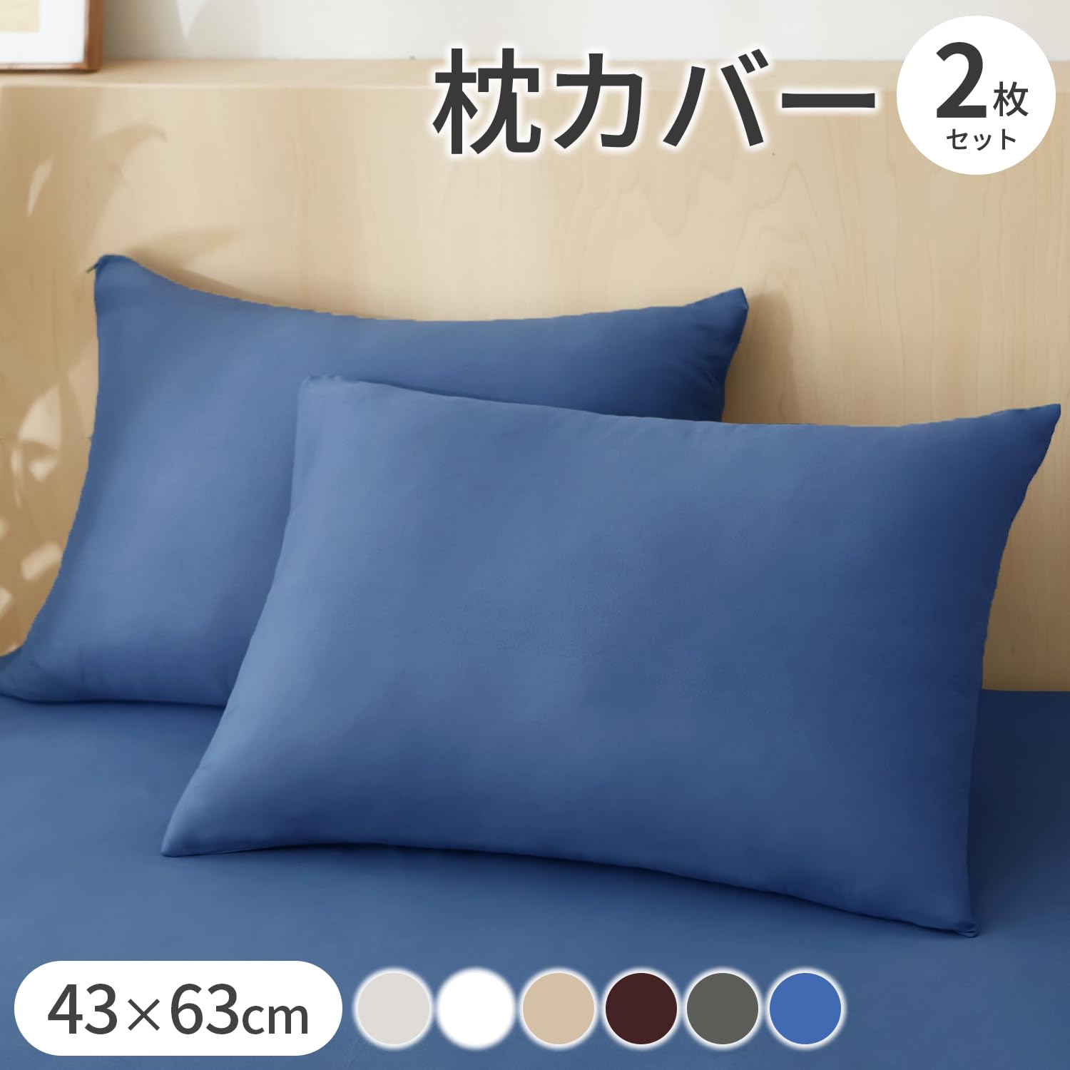 AZRA 枕カバー 2枚セット 43 63 ピローケース ピーチスキン加工 ファスナー式 チャック付き おしゃれ オールシーズン 通気 速乾 ダークブルー