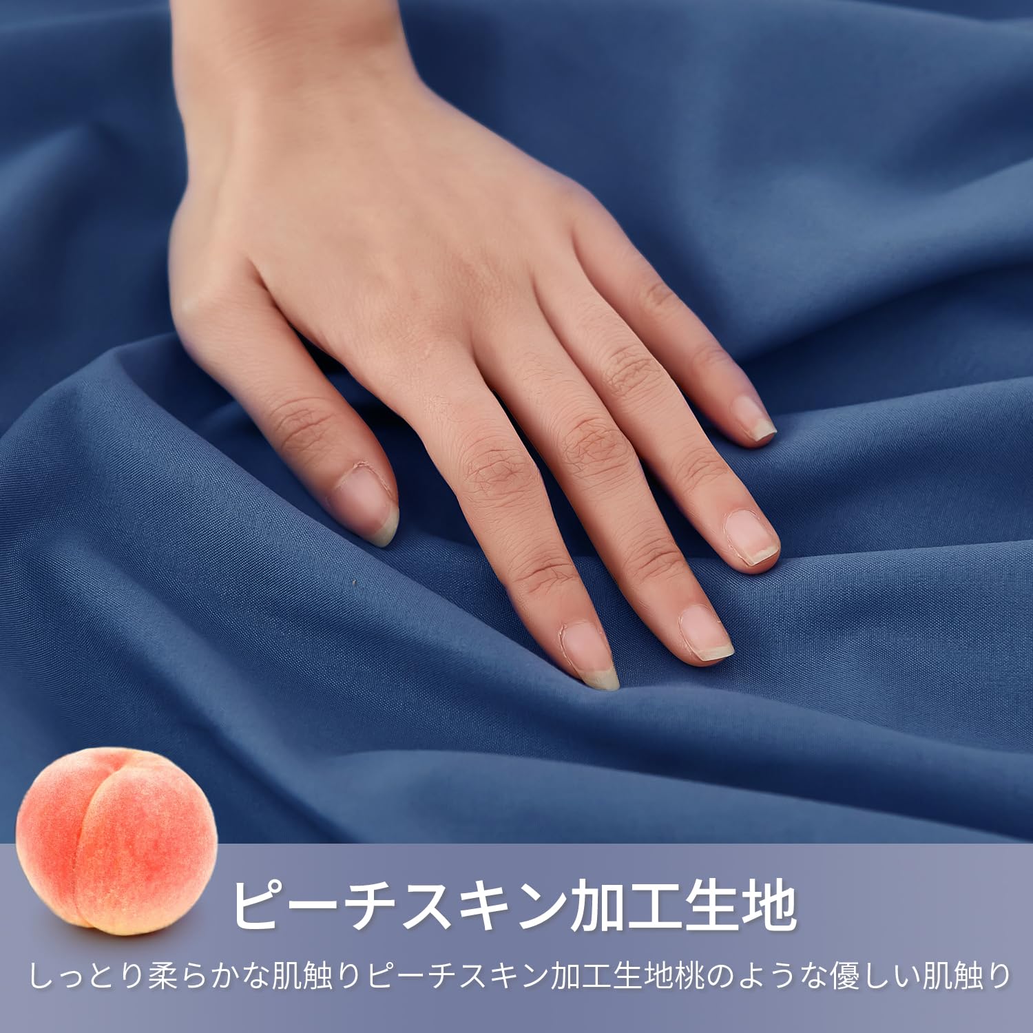 <ピーチスキン加工>:柔らかい磨き再生繊維(ポリエステル100%)を採用したpillow caseに、ピーチスキン加工を施しています。ソフトな起毛とサラっとした肌触りで、快適な寝心地を実現。