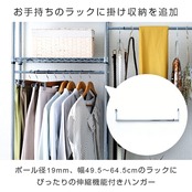 【特価在庫】ドウシシャ(DOSHISHA) ルミナスラック 伸縮式ハンガーポール 幅70-90cm棚専用 19HP-70S 耐荷重20kg ポール径19mm スチールラックパーツ 大容量 取付簡単 棚板に引っ掛けるだけ diy ハンガーラック ワードローブ 追加部品 合金鋼 防錆加工 クロムメッキ シルバー | GIGATERA
