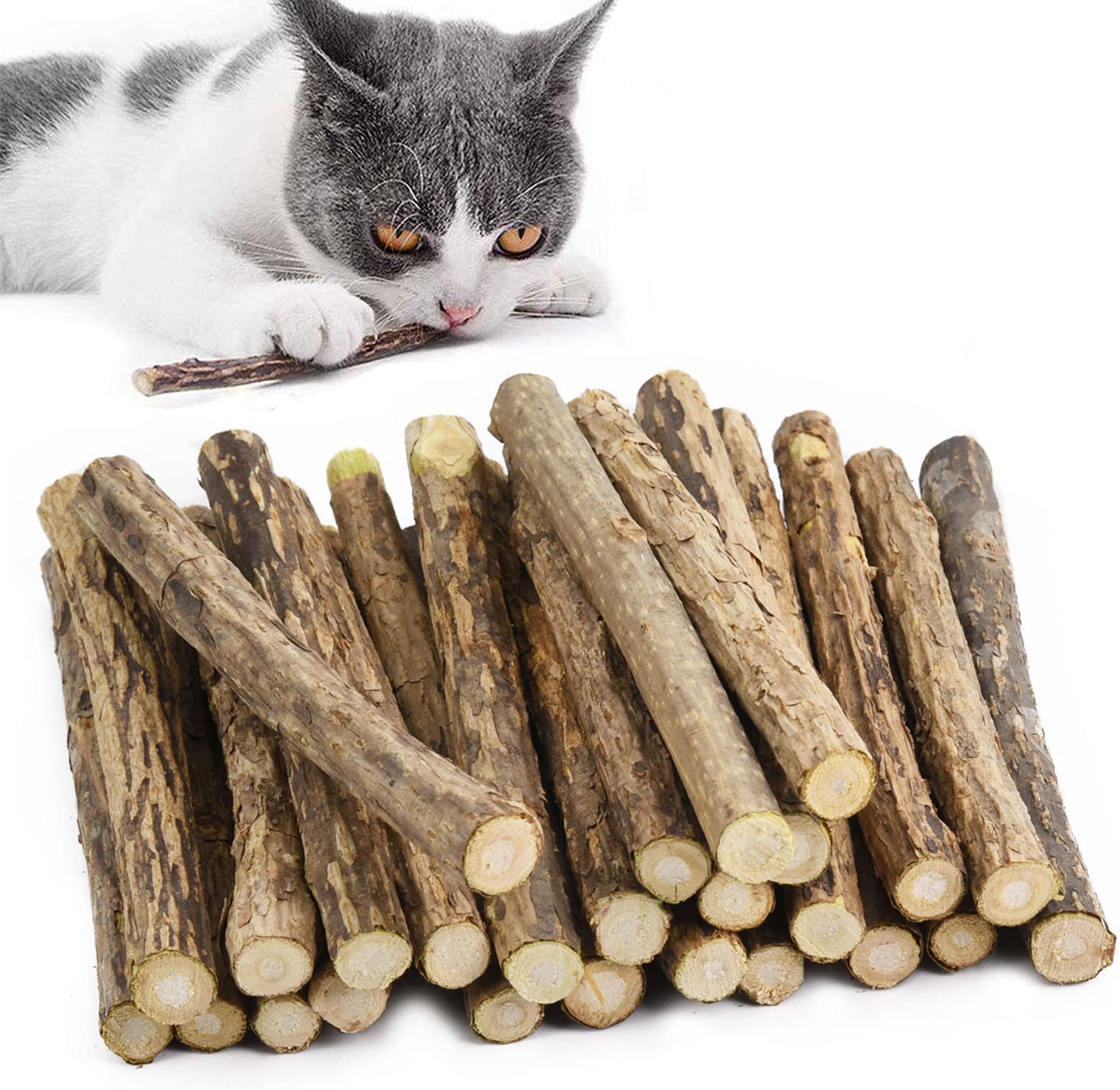【無添加またたびの木】天然な木で猫噛むおもちゃ、アンチノック剤がない、安全で無毒, 猫キャットニップ歯科用スティックはあなたのペットにとって100%安全です。