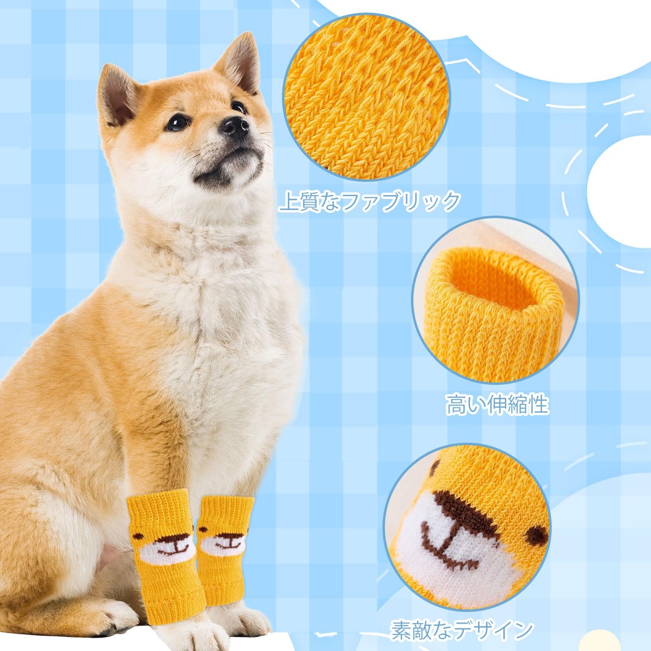 【パッケージ内容】黄色いクマさん柄のペット用レッグウォーマーを4枚お届けします。 【ペット レッグウォーマー】ペット用レッグウォーマーは、冬の間、ペットの足を暖かく保つのに効果的です。 ペットの足を暖めながら、わずかながら保護することができます。 【素材】上質なコットンニットを使用しているため、着心地がよく、家でも屋外でもペットが自由に遊ぶことができ、春、夏、秋、冬、健康でおしゃれな愛犬のために使用できます。 【運動保護】高齢のペットや脚にケガをしているペットは、ケガをしないように脚の関節をより一層保護する必要があります。 外に出ればペットは暖かくなり、室内にいればペットの足の健康が守られます。 【用途が広い】ペット用レッグウォーマーは、愛犬をかわいく演出し、注目を集めることができます。 レッグウォーマーは、愛犬が日常的に、パーティーで、休日に、旅行で、着用することに適しています。