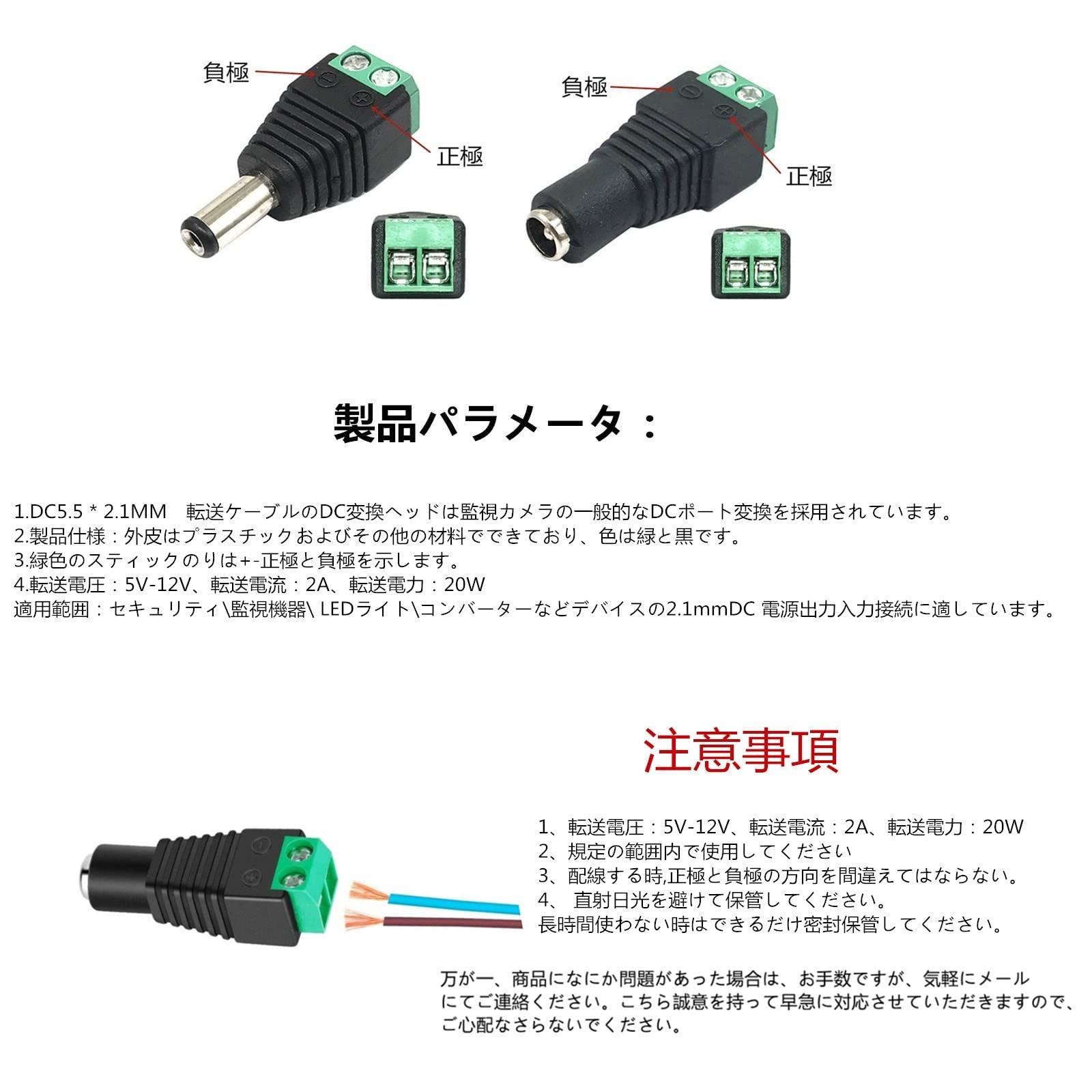 【適用範囲】CCTVカメラ、 LEDストリップ、セキュリティ、監視装置、 DC電力変換器などデバイス出力入力接続、または他のDC 12Vデバイスに大活躍です。
