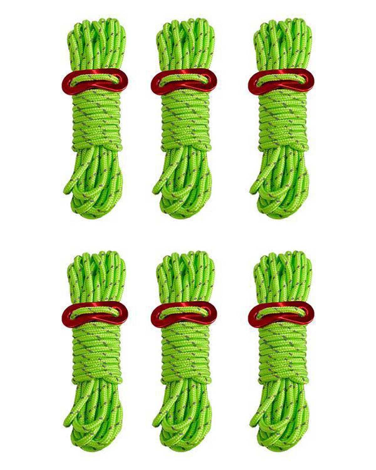 【特価在庫】LIKENNY テントロープ 4mm * 4m 耐荷重200KG ガイロープ パラコード ロープ ガイライン タープロープ 反射材 自在金具付き キャンプ アウトドア 物干しざお 【6本セット】グリーン | GIGATERA