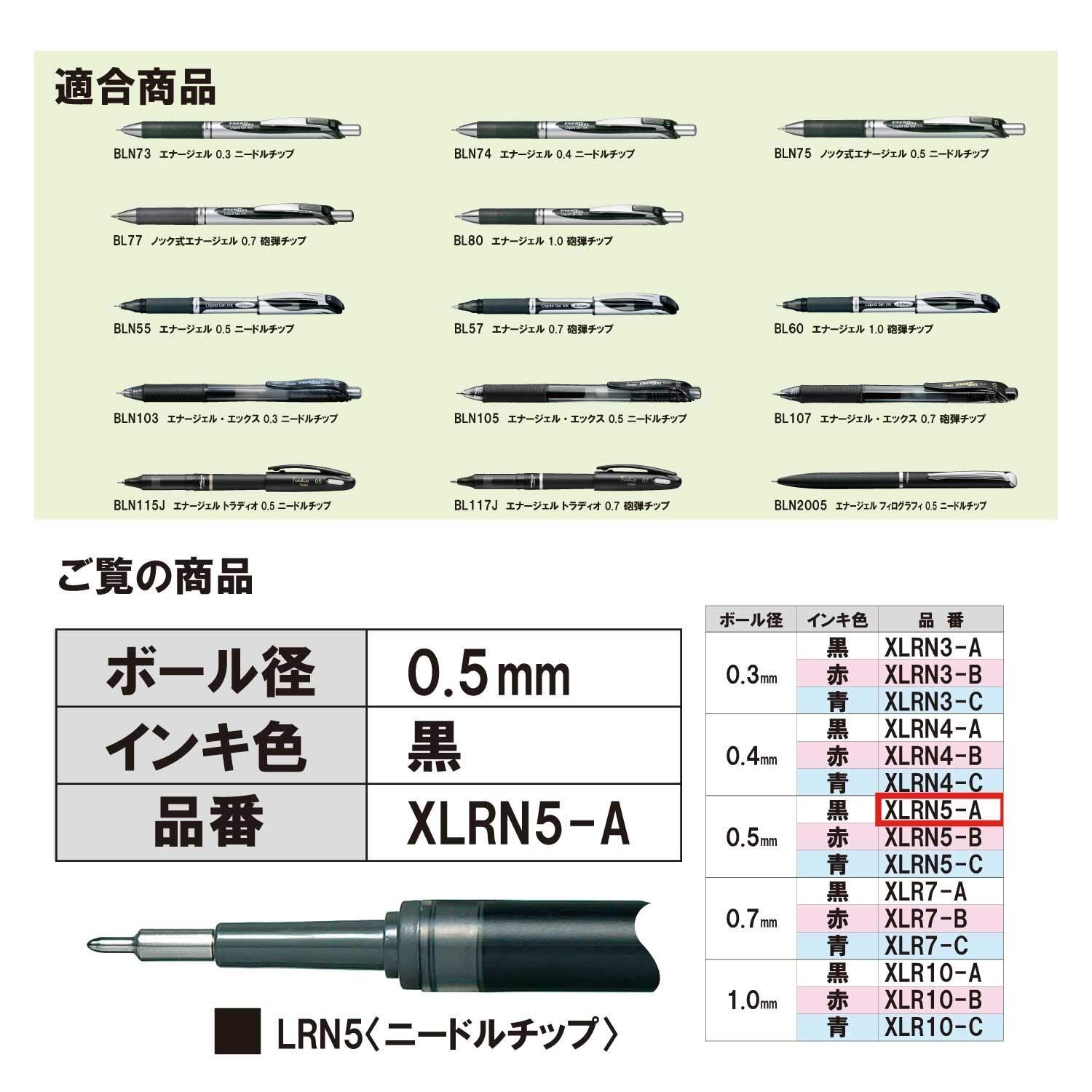 ぺんてる ボールペン替芯 XLRN5-A 0.5mm 黒