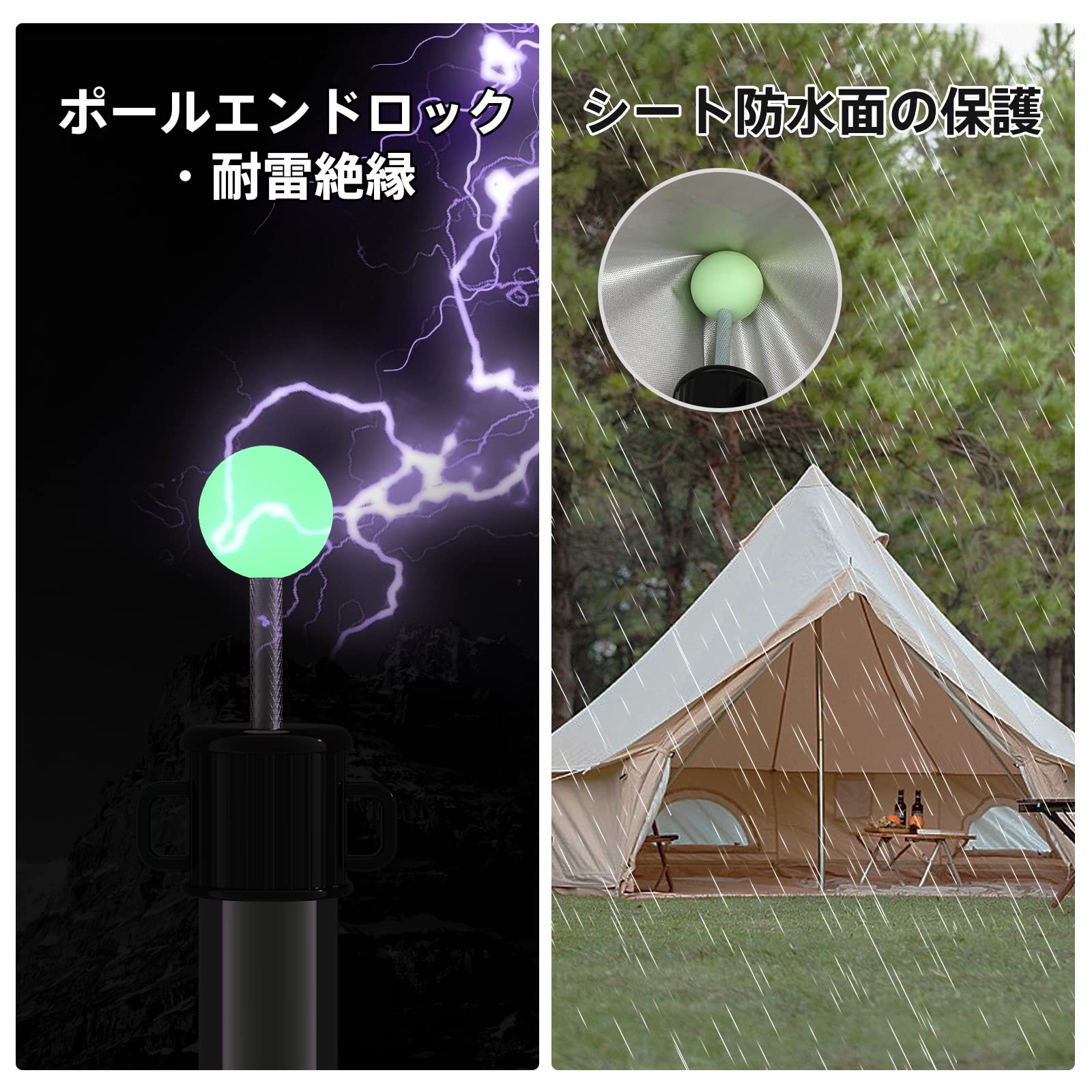 【雨の日キャンプの必需品】雨天の場合、ポールの先端につけて、タープを持ち上げることができ、雨水がタープの上に溜まりにくくなります。