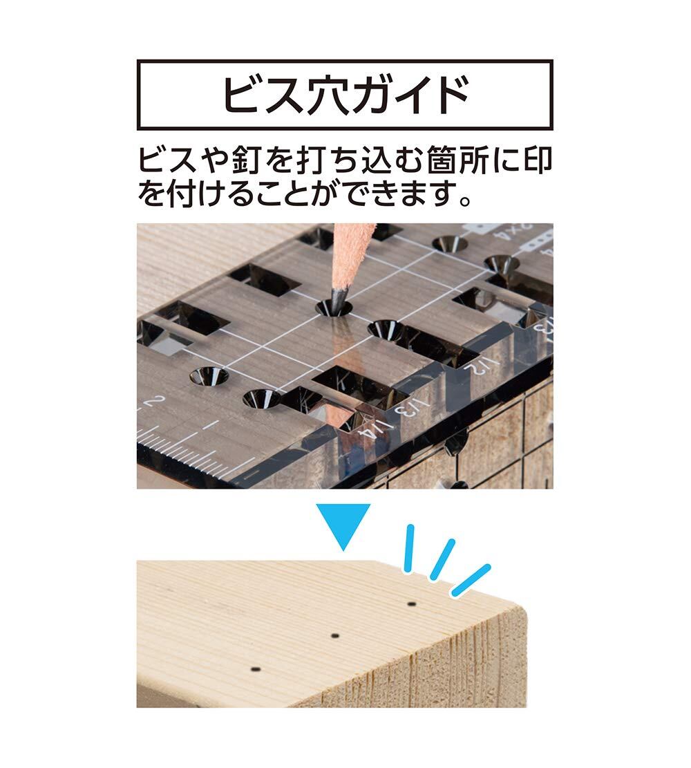 ビス穴ガイドを使用することで、ビスや釘を打ち込む箇所に印をつ付けることができます。