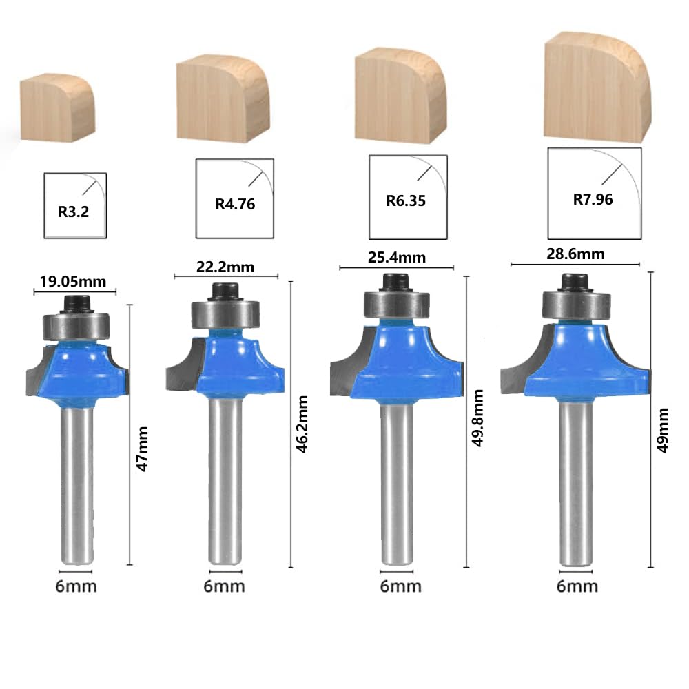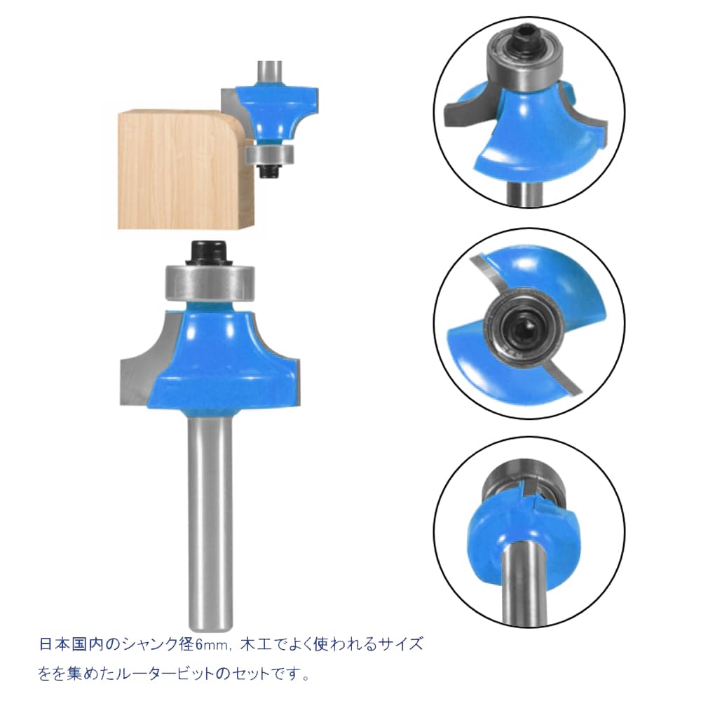 CSOOM Pro 4本入 コロ付丸面ビット角面ルータービット 軸部6mm 超硬トリマ ルータービット ルーター ベアリング 電動トリマービット 木工用