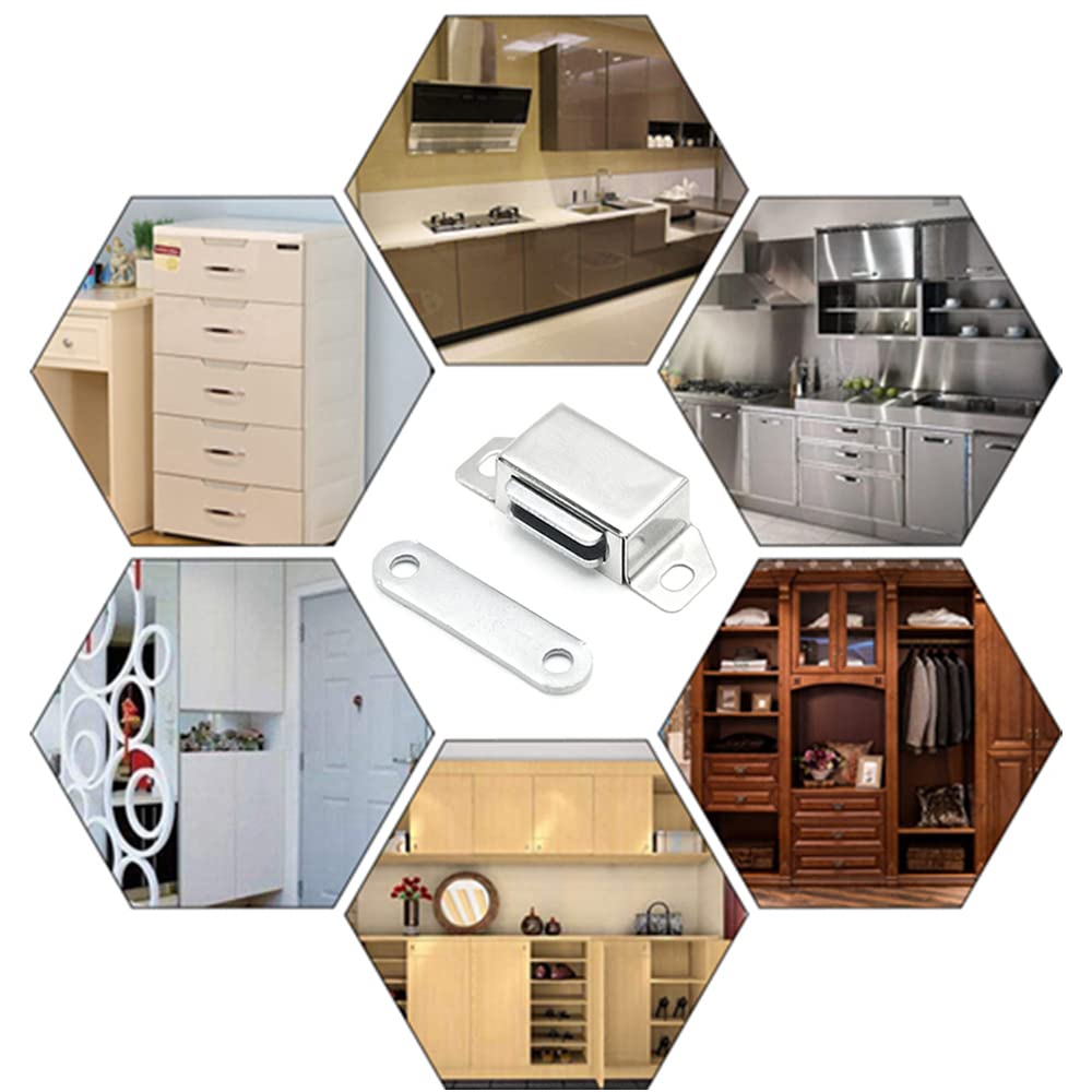 YUQIR 小型 マグネットキャッチ ステンレス鋼製 磁気キャッチラッチ ドア止め金具 家具扉 戸棚 食器棚用の磁気ドアキャッチ (8個入り)(包装を改善する)