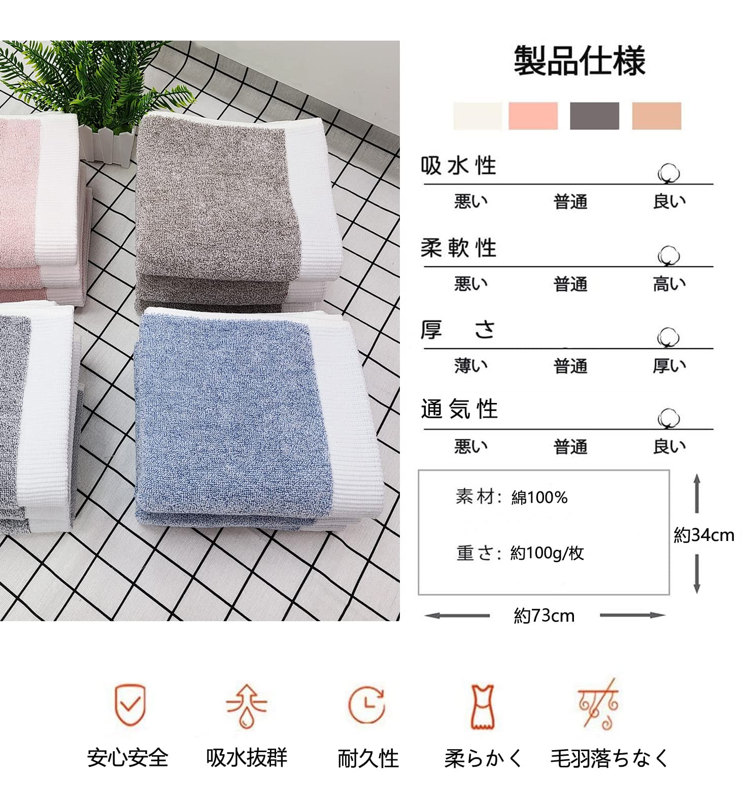 ?【優れた品質】厳選された100%高級綿の素材、蛍光染料は使用しておりません、優しく柔らかい肌触り、優れた通気性。安全で快適な使い心地が備わっているので、赤ちゃんや敏感肌の方にも安心してご使用頂けます。高密度で織ったことで、洗濯しても変形しにくく、長持ちできる、色移りの心配もありません。