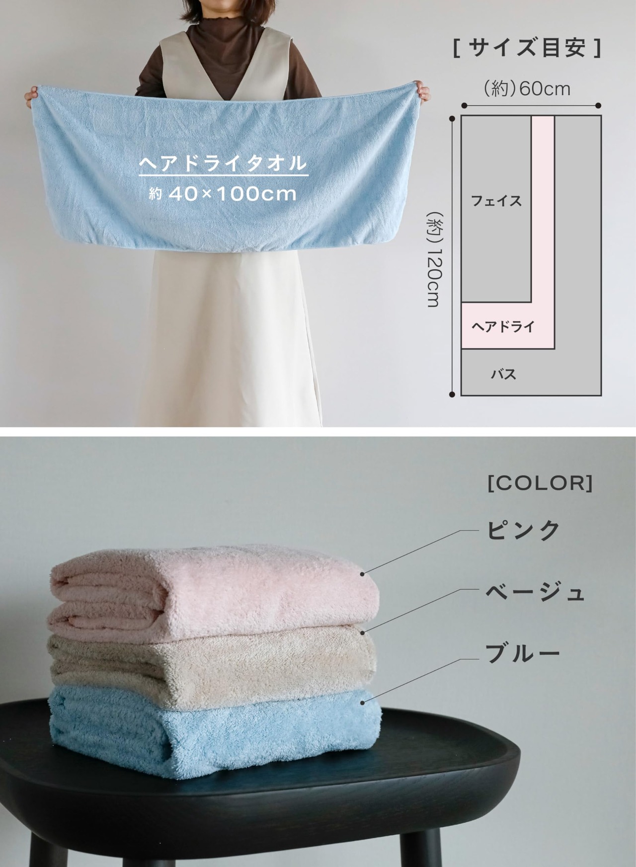 セット内容:ヘアドライタオルのベージュ3枚