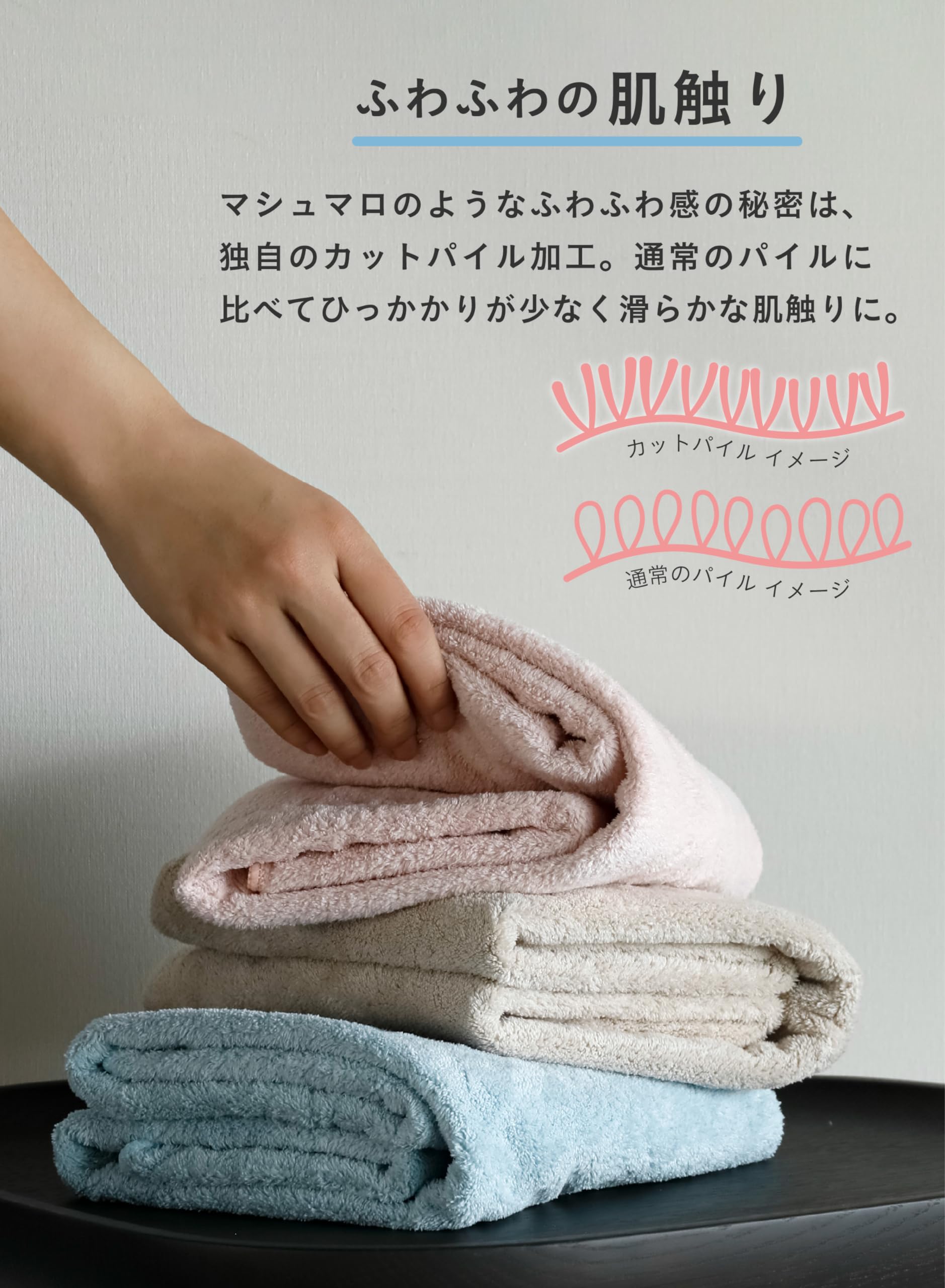 ふわふわもっちり肌ざわりの秘密は独自のカットパイル加工