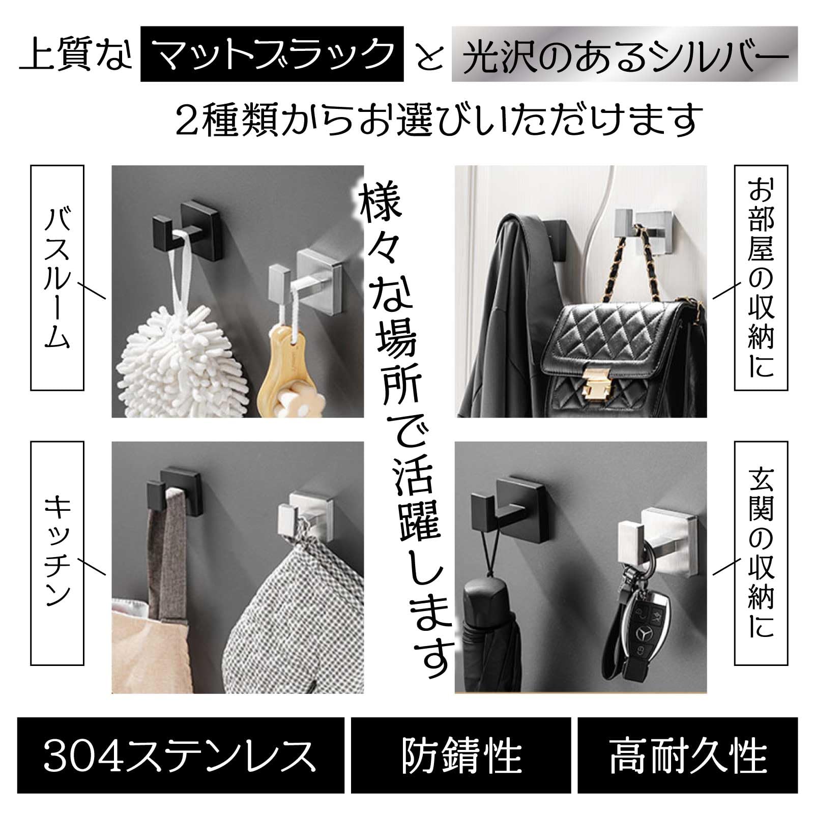 Funriche タオル掛け 洗面所 バスルーム タオル フック ステンレス 壁掛け タオルバー ネジ固定壁付 収納フック 2個セット(光沢 シルバー)