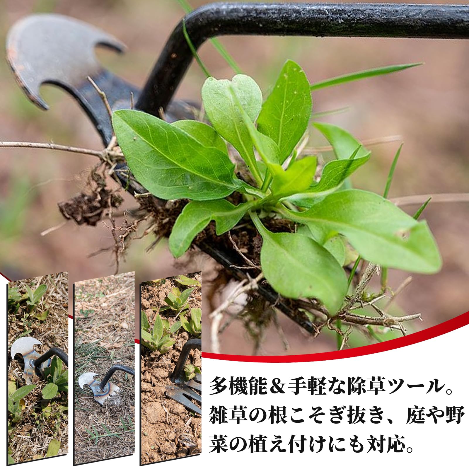 4本爪の多目的草取り道具:人間工学に基づいたデザインの除草ツールは、雑草を簡単に取り除くことができます。延長デザインのハンドルは使用範囲を広げ、尖った先端は狭いスペースでも簡単に扱えるため、さまざまな環境に適しています。