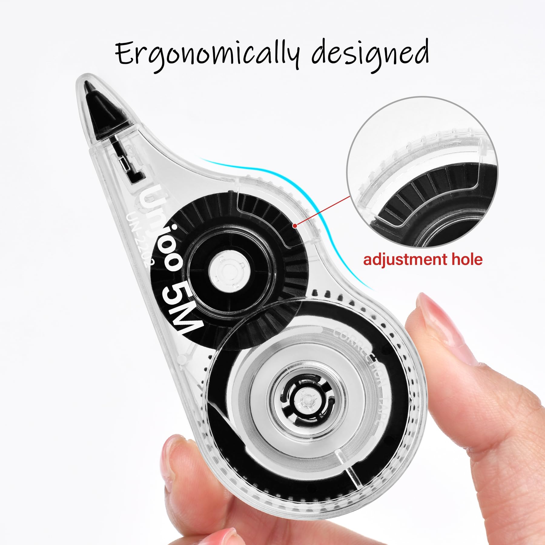 完璧なデザイン:人間工学に基づいた形状と快適なグリップにより、しっかりとしたグリップが得られます。これは、長期的な矯正作業に非常に適しています。透明ディスペンサーを使用すると、テープを確認できるため、不足する前に知ることができます。