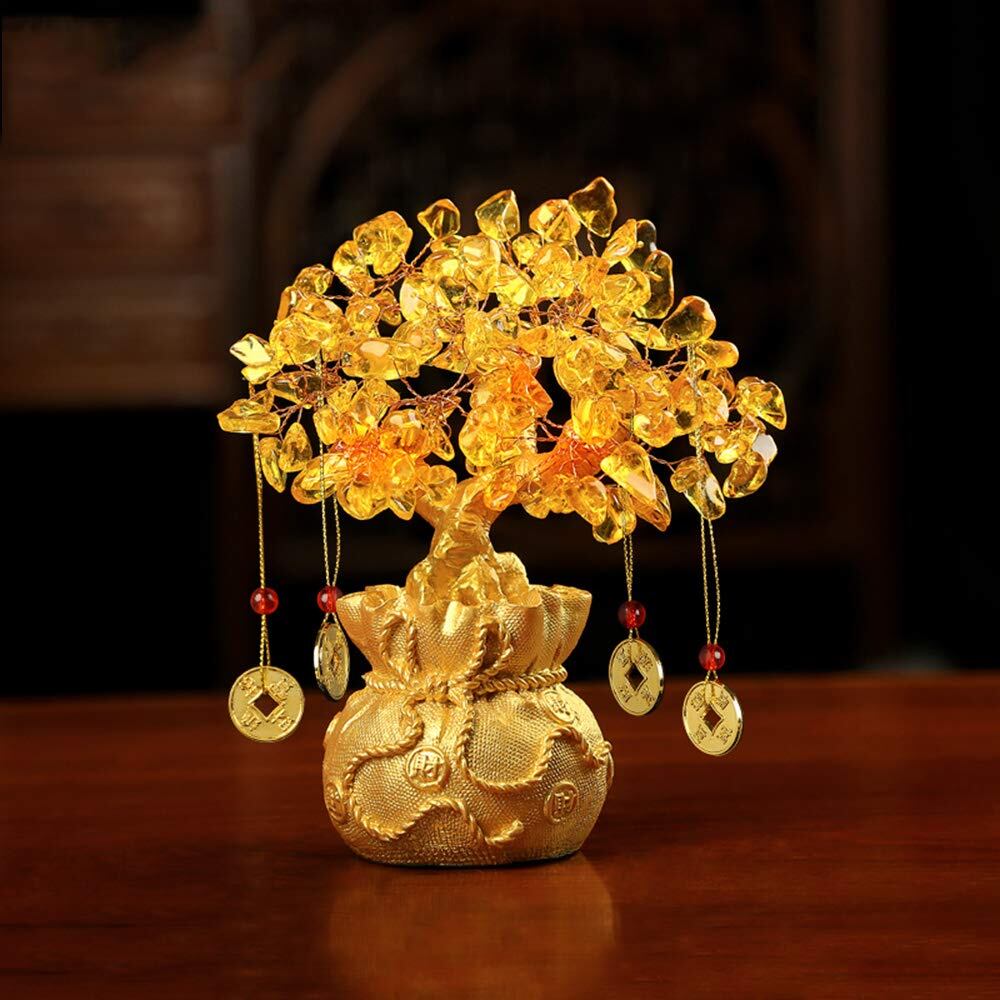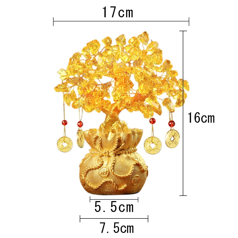 MYONEEN 木材 招財樹 金のなる木 黄水晶 シトリン 風水アイテム インテリア 金運祈願 開運 商売繁盛祈願 パワーストーン お礼 新年 贈り物 (金 普通)