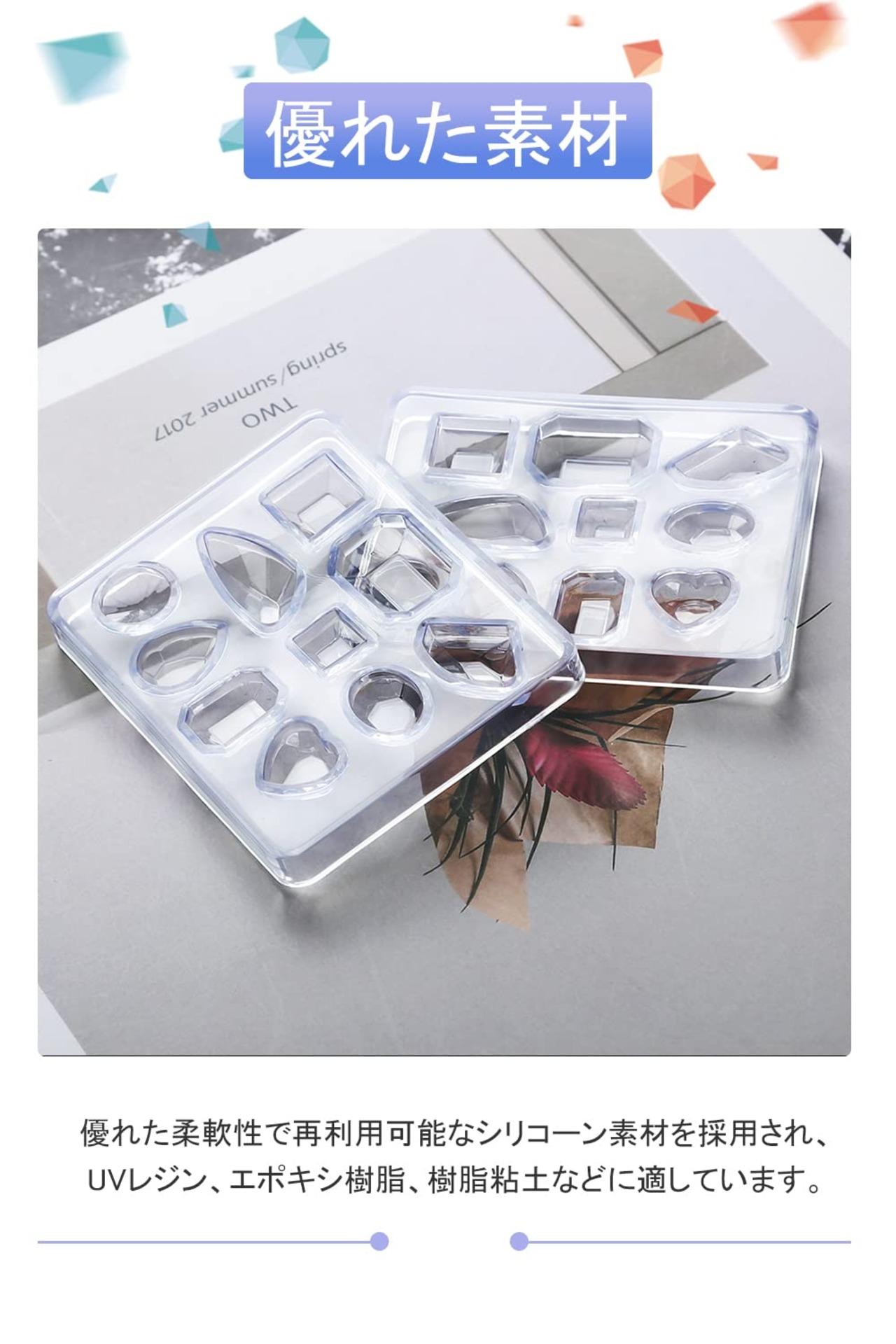 ?【優れた素材】優れた柔軟性で再利用可能なシリコーン素材を採用され、UVレジン、エポキシ樹脂、樹脂粘土などに適しています。
