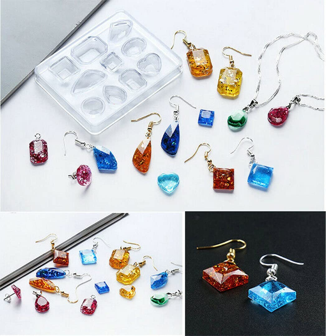 HappyHome レジン型 シリコンモールド セット ダイヤ クリスタル 円柱 角柱 宝石型 UVレジン型 ヒートン&バチカン付き DIY アクセサリーパーツ作り