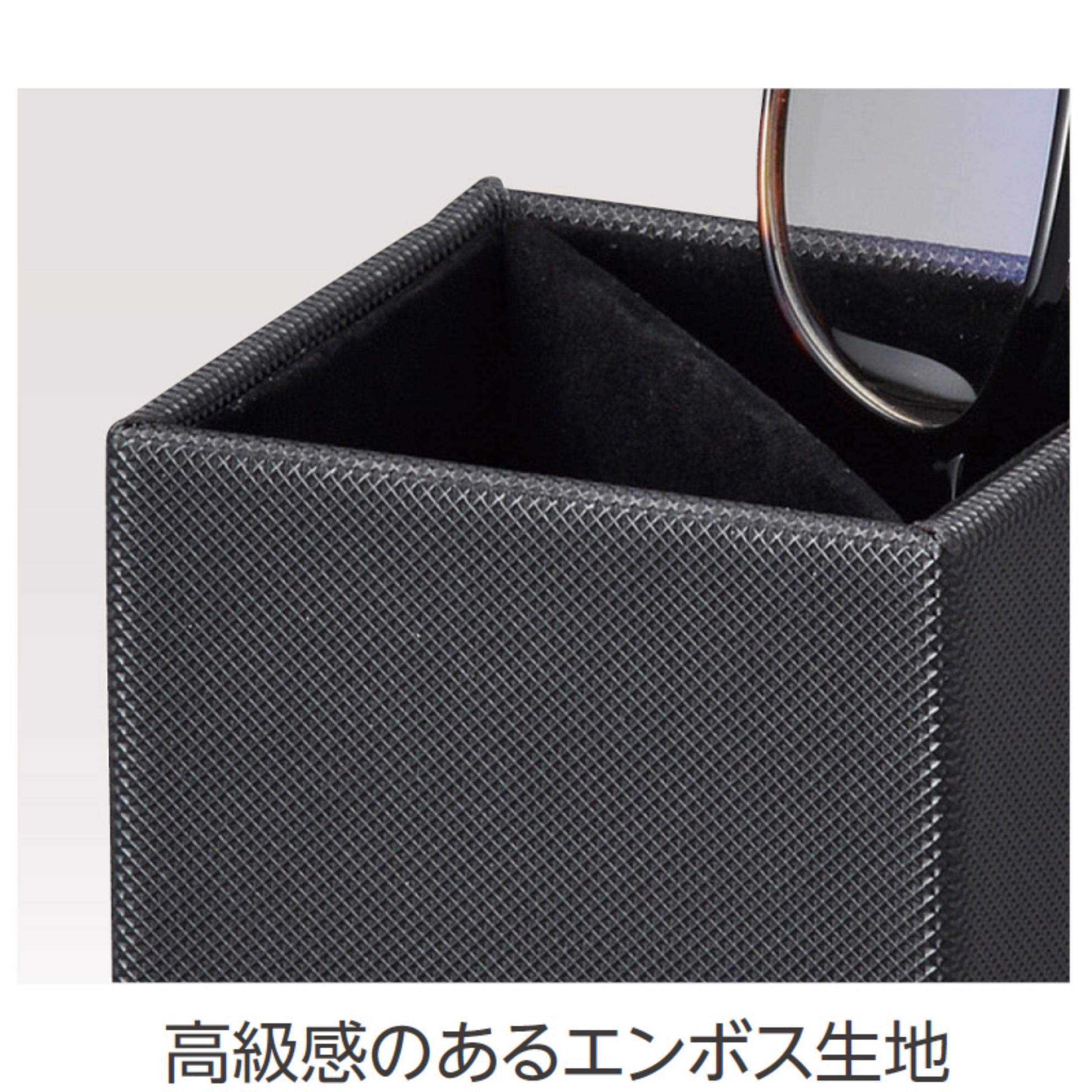 メイガン(Meigan)メガネスタンド おしゃれ エンボス 仕上げ 2本用 仕切り取り外し可能(小物入れ リモコンスタンド ペンスタンド にも) ブラック 7.8×7.8×高さ9.3cm 5910-01
