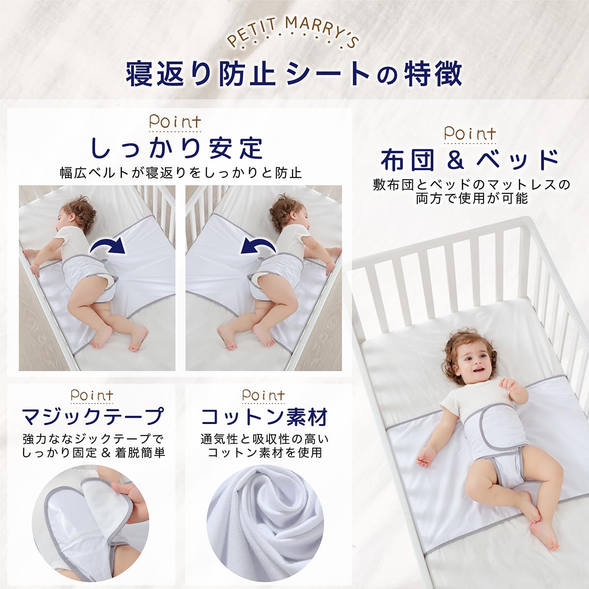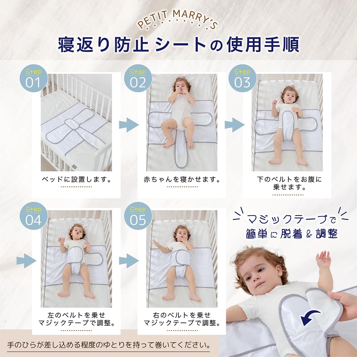 [PETIT MARRY'S] 寝返り防止シート 寝返り防止ベルト スワドル おくるみ 新生児 赤ちゃん 出産祝い ベビー用品 赤ちゃん用品 (シーツベルトセット)