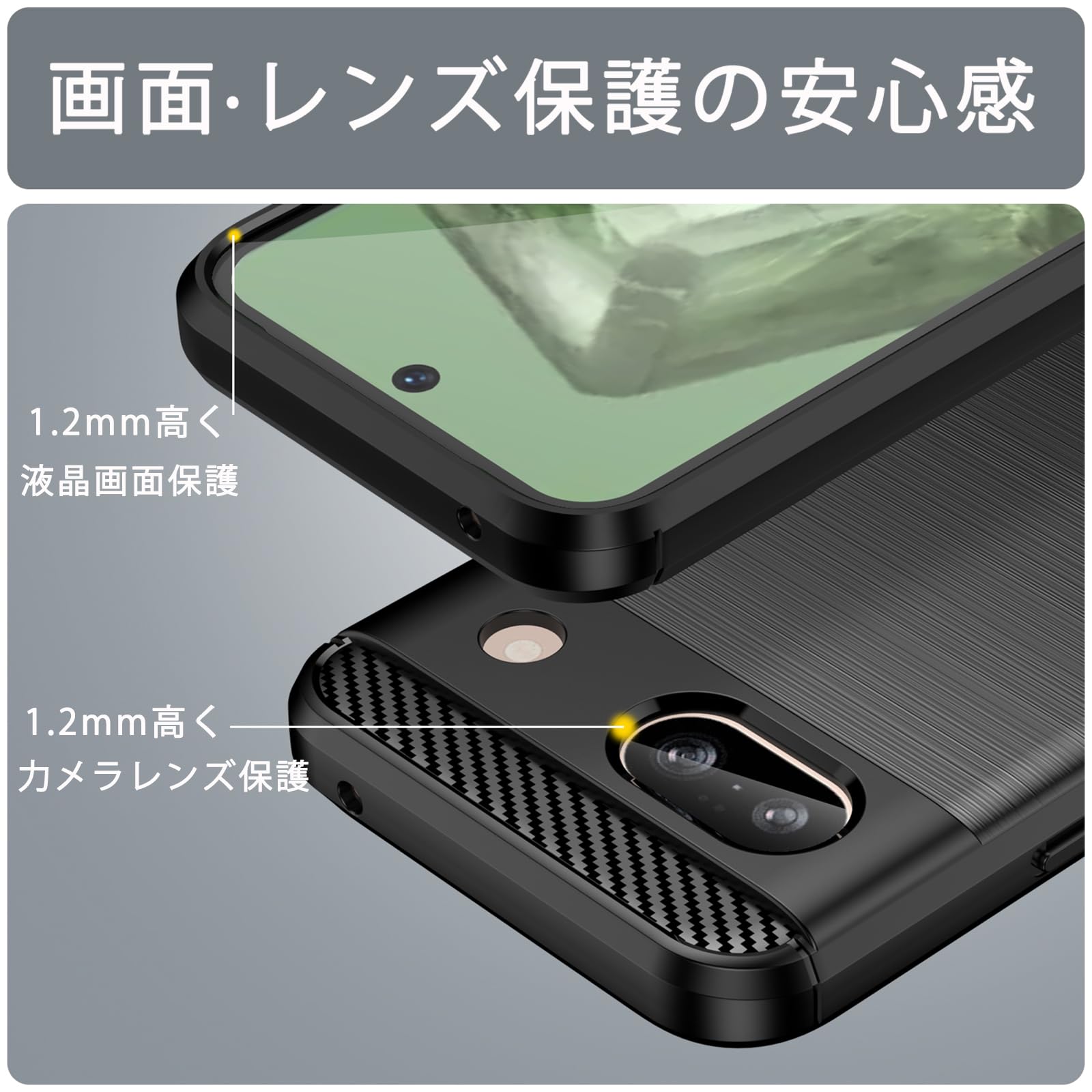 【全面の保護】Pixel 8aの曲線に従う高低差設計。液晶画面やカメラレンズより1.2mmほど高め、卓上に置いても傷がつきにくく、併用のガラスフィルムまでも保護できる。