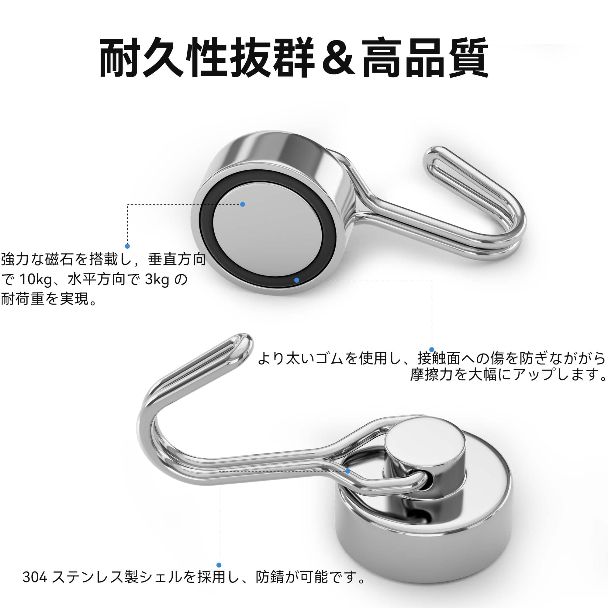 【数量限】Ditfook【4個セット】マグネット フック 強力 磁石付き フック ステンレス製 錆びない 垂直耐荷重10kg キッチン オフィス 浴室 風呂 台所 レンジフード 冷蔵庫 玄関 洗濯機 収納用 磁石フック 小さい | GIGATERA
