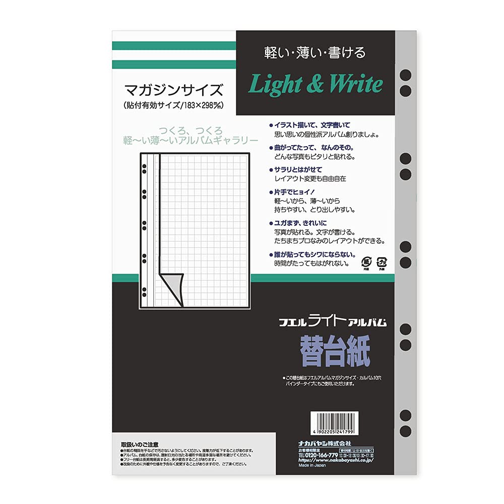 軽い!薄い!書ける! Light & Write ライトフリー台紙アルバム、マガジンサイズ・10穴バインダー式綴具タイプ用補充台紙。