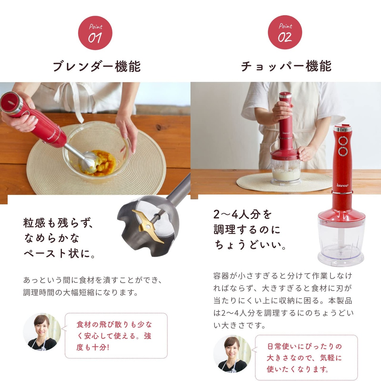 bianca+ R ブレンダー ハンドブレンダー ハンドミキサー マルチブレンダー 1台5役 離乳食 出産祝い 結婚祝い ギフト (レッド)