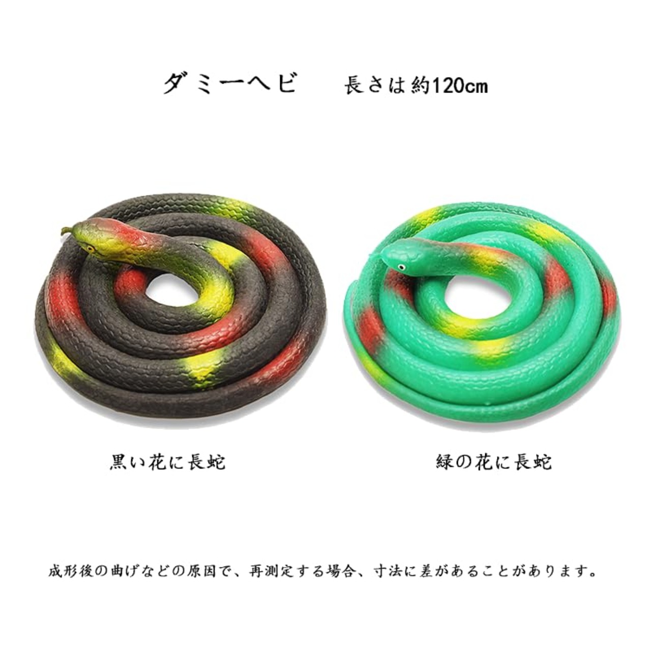 【ダミーヘビ】黒い花に長蛇、長さは約120cm。成形後の曲げなどの原因で、再測定する場合、寸法に差があることがあります。