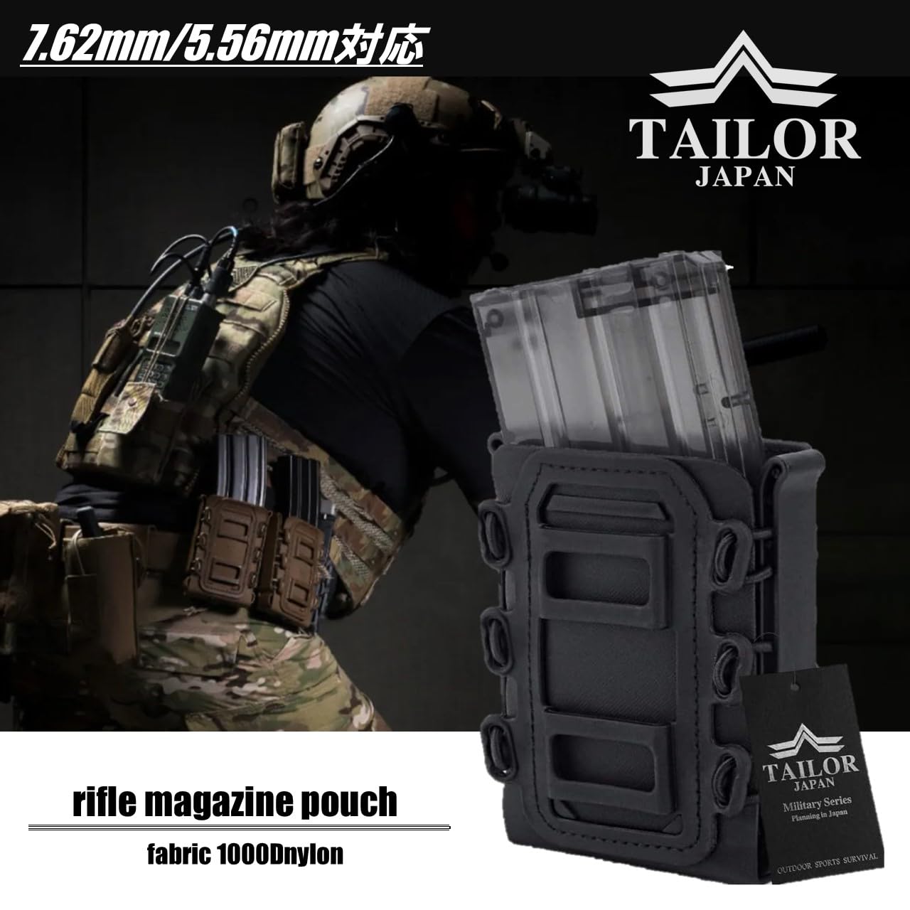 【TAILOR JAPAN】 ライフル マガジンポーチ サバゲー 電動ガン M4 AK48 オープントップ マグポーチ 多種の形状に対応 (ブラック)
